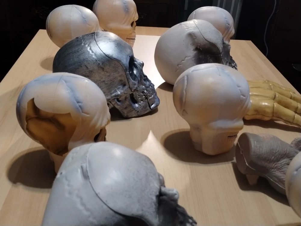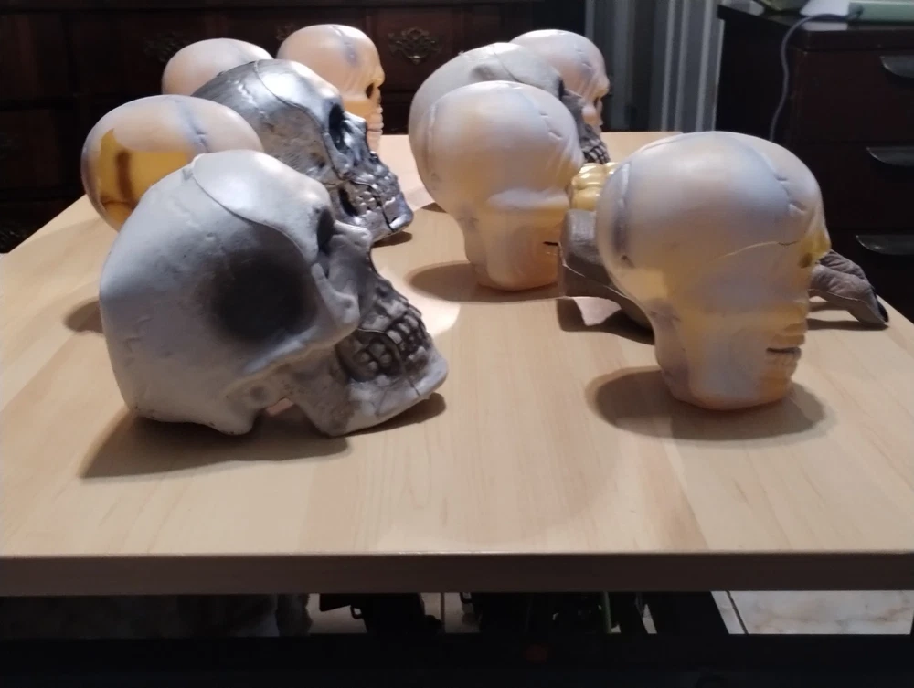 This Halloween lot includes figurines of skulls with right and left hands, designed to add a spooky touch to your seasonal décor. Made of plastic in a modern style, these medium-sized figurines are perfect for teens, adults, and kids alike to display in any room during the Halloween season. The beige color adds a realistic touch to these lifelike representations, making them a unique and eye-catching addition to your holiday and seasonal decorations.