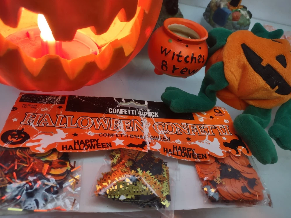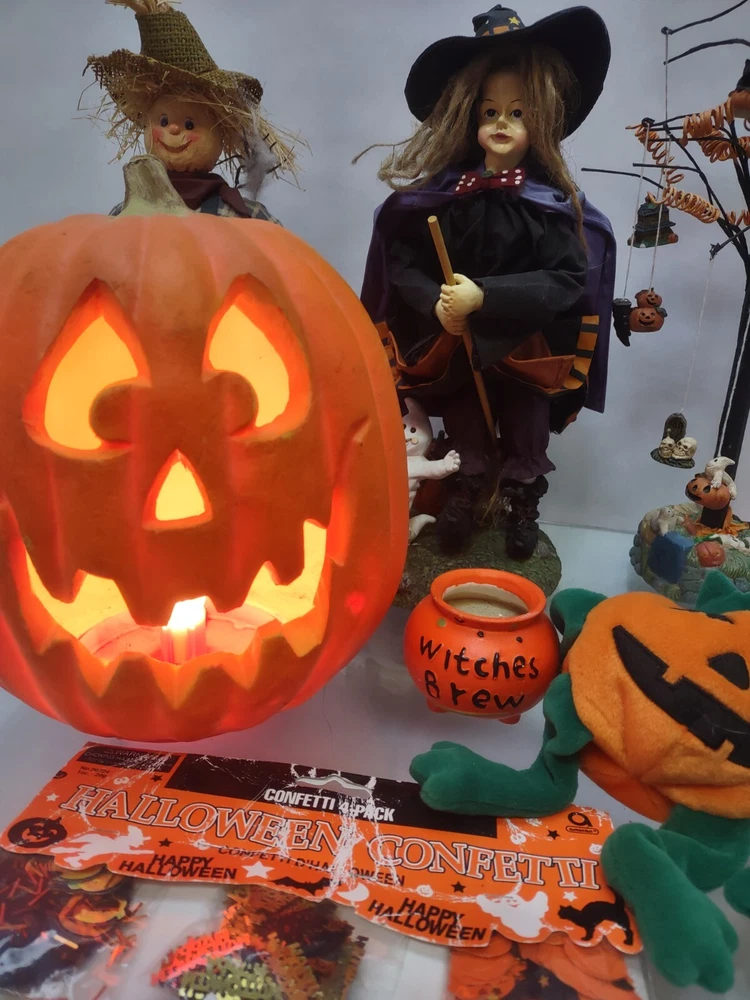 All items come from a smoke free home. #861 Hello, up for grabs I have a figure scarecrow and witch . This is a cute little lot, you get everything in the photos. To give you a size reference, the top of the tree is about 17". The light up Jack-O-Lantern is made of a soft material like foam. There is some Halloween Confetti and candy corn pattern candy bags. Please look at the scans and/or photos and ask any questions you have BEFORE purchasing. --SHIPPING-- I have listed several shipping options. Please choose the shipping option that is best for you. Your choice will determine the cost and speed at which your item arrives. --PACKAGING-- I take pride in my packaging and shipping. I am aware of the ways that items can be damaged in shipping and take care to protect your purchases. I want your items to reach you in the condition you purchased them in just as much as you do. I USE CLEAN RECYCLED BUBBLE WRAP, E FOAM AND PEANUTS AND BOXES AS MUCH AS POSSIBLE. I ship comic books in their own individual used or new bag with boards most of the time. There are times that I wil ship lots of comics without individual bags and boards, but they will be shipped well protected. I package all comics stiff, in flat mailers or in boxes. I use bubble wrap, e-foam, peanuts and sometimes paper as padding. I re-use packaging materials as much as I can.