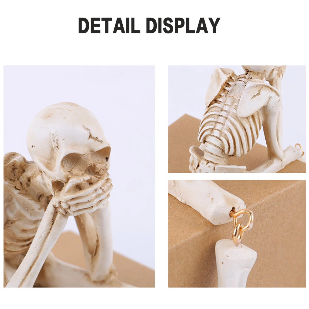 Features: Realistic Design: These resin human skeleton figurines feature intricate details and lifelike appearances, adding a touch of macabre elegance to any halloween display or haunted house decor. Versatile Placement: Suitable for home halloween tabletops, haunted houses, cemeteries, and even flat dormitory decorations, these creative skeleton figurines offer flexibility in creating spooky and festive atmospheres. Movable Parts: The halloween movable skull skeleton allows for customizable poses and arrangements, enhancing the interactive and playful aspect of decorating haunted houses or hosting fun themed parties. Durable Construction: Made of premium-quality resin, these skeleton statues are built to withstand the elements and provide long-lasting use for multiple halloween seasons, ensuring a reliable addition to your creative haunted house layout supplies. Unique Party Decor: Elevate your halloween celebrations with these creative skeletons that bring a fun and eerie vibe to any gathering, making them ideal for party decorations that are sure to impress guests and set the mood for a memorable event. Specification: Material: Resin Size: 9*8*20cm Notes: Please allow slight tolerances in size due to manual measurement, and lighting in photography may result in a difference in color than in real.
