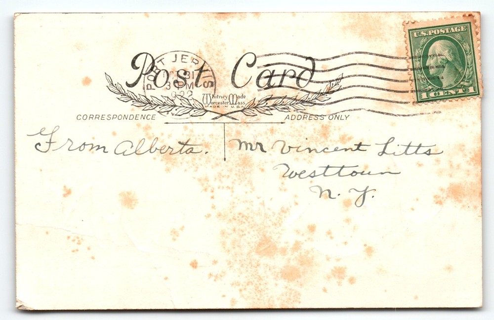 Posted with 1922 cancel. Antique original vintage post card. Has several creases, corner dings, and age wear. Stock #hal324. Additional postcards are in our store. All post cards are old originals and may or may not have writing on back.