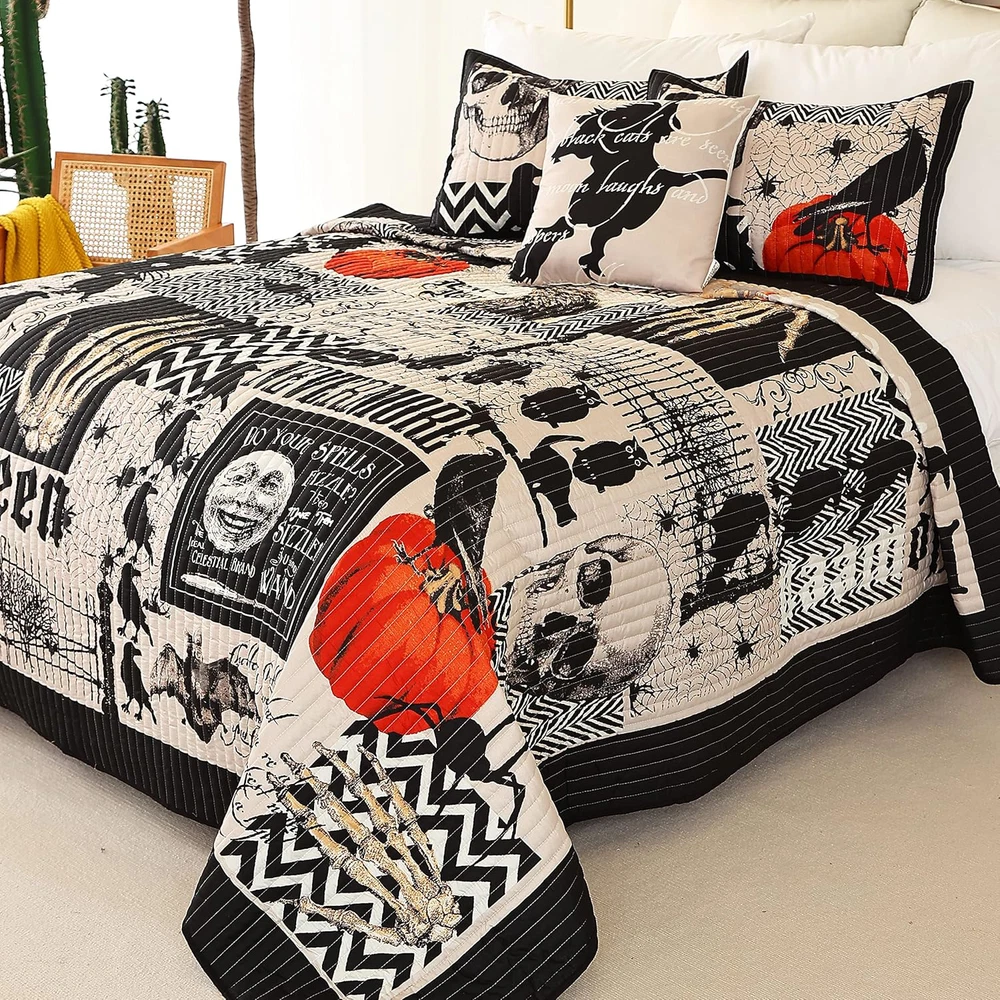 Fast Shipping Great Customer Support Satisfaction Guaranteed DESCRIPTION Shipping Shipping Shipping All domestic packages are shipped for Free (Unless other shipping method was selected during the checkout) Most items ship and arrive much sooner than the estimate delivery date. Usually within 2-3 days from payment. However, we have longer estimates to compensate for the occasional delay or supply chain breakdown. We do not accept P.O. BOXES - PLEASE PROVIDE A PHYSICAL ADDRESS Return Return Return In the event that you would like to return your purchase, we allow returns that are processed within the defined return date (the return date is to be found in the return policy/shipping and handling section) Please contact us for a return authorization and the return shipping address. Payment Payment Payment PayPal is our preferred method of payments it's the quickest, easiest and most secure way to pay for your goods or services online. PayPal offers buyer and seller protection should there be a problem. If you do not have a PayPal account, to get started and buy your first item with us is very easy. Simply click on the 'Buy It Now' button and follow the eBay checkout steps. Select PayPal as the payment method you then will be given the chance to enter your card details in to PayPal's secure checkout in order to pay for your order. Once the payment has been made, you will then be given the opportunity to make your own PayPal account to make paying for your items in the future very easy. Should there be a problem with payment please do let us know. Feedback Feedback Feedback Customer satisfaction is very important to us. If you have any problem with your order,please contact us and we will do our best to make you satisfied, please do not leave a negative feedback before we resolve your problem. We guarantee that your issue will be solved quickly. As long as you are happy with your purchase of , please leave us a positive feedback. Your feedback is very important to us it affects our search placement on eBay. We will leave a positive feedback for you in return automatically once we receive your feedback. Contact Us Contact Us Contact Us If you have any queries, please contact us via ebay. We usually respond within 24 hours on weekdays. Thank you for visiting our ebay store! šćDelicate Halloween Designć: Exquisite reversible stitching technology and classic print are the features of the bed cover set. The design of dark elements, ghosts, cats, pumpkin patterns, will all be in line with the festival theme. This quilt set is the perfect match for Halloween home decorations. šćSoft & Comfortableć: Shell: 100% soft lightweight fabric; filling: 100% Polyester. The design of a quilt creates a cozy and durable state, so it will soften after washing without clumping and shifting. šćSize & Measurementć: The king size Halloween decorative bedding sets includes 1 quilt: 104"x 90"; 2 pillowcases: 20"x 36";1 throw pillowsham:18"x 18". We kindly suggest that you measure your bed before purchasing. šćEasy Careć: Machine wash cold on gentle cycle and tumble dry low. Do not iron or bleach. šćAfter-sales Serviceć: Please feel free to contact us if you have any questions about our products. We will try our best to solve the problem as soon as possible. Halloween Pumpkin Ghost Black Quilt Set Queen 4 Piece Coverlet 90x90 Click here to see description Fast Shipping Great Customer Support Satisfaction Guaranteed DESCRIPTION Shipping All domestic packages are shipped for Free (Unless other shipping method was selected during the checkout) We ship within two business days of payment, usually sooner Standard FREE shipping takes between 3-5 business days Expedited shipping takes between 2-3 business days Overnight shipping takes between 1-2 business days We do not accept P.O. BOXES - PLEASE PROVIDE A PHYSICAL ADDRESS We Ship Globally using ebay's GSP, the item is sent to a logistic center in KY and shipped from there to the rest of the world. International customers are responsible for all duties and taxes Contact your local authority for questions related to the amount of duties or taxes you will be responsible for Return In the event that you would like to return your purchase, we allow returns that are processed within the defined return date (the return date is to be found in the return policy/shipping and handling section) Please contact us for a return authorization and the return shipping address. Please contact us for a Return Merchandise Authorization (RMA) number. We advise you to use a reputable carrier service when returning your goods. Please pack all returns appropriately. We ship globally Via eBay's global shipping program (GSP). Thus we don't cover returns for items shipped globally. Buyers returning such items will be refunded ONLY for the item's cost and not for the shipping. please check the Voltage information and make sure it matches the one in your country. In case it's not stated in the description, do ask us. Payment PayPal is our preferred method of payments it's the quickest, easiest and most secure way to pay for your goods or services online. PayPal offers buyer and seller protection should there be a problem. If you do not have a PayPal account, to get started and buy your first item with us is very easy. Simply click on the 'Buy It Now' button and follow the eBay checkout steps. Select PayPal as the payment method you then will be given the chance to enter your card details in to PayPal's secure checkout in order to pay for your order. Once the payment has been made, you will then be given the opportunity to make your own PayPal account to make paying for your items in the future very easy. Should there be a problem with payment please do let us know. Feedback Customer satisfaction is very important to us. If you have any problem with your order,please contact us and we will do our best to make you satisfied, please do not leave a negative feedback before we resolve your proble