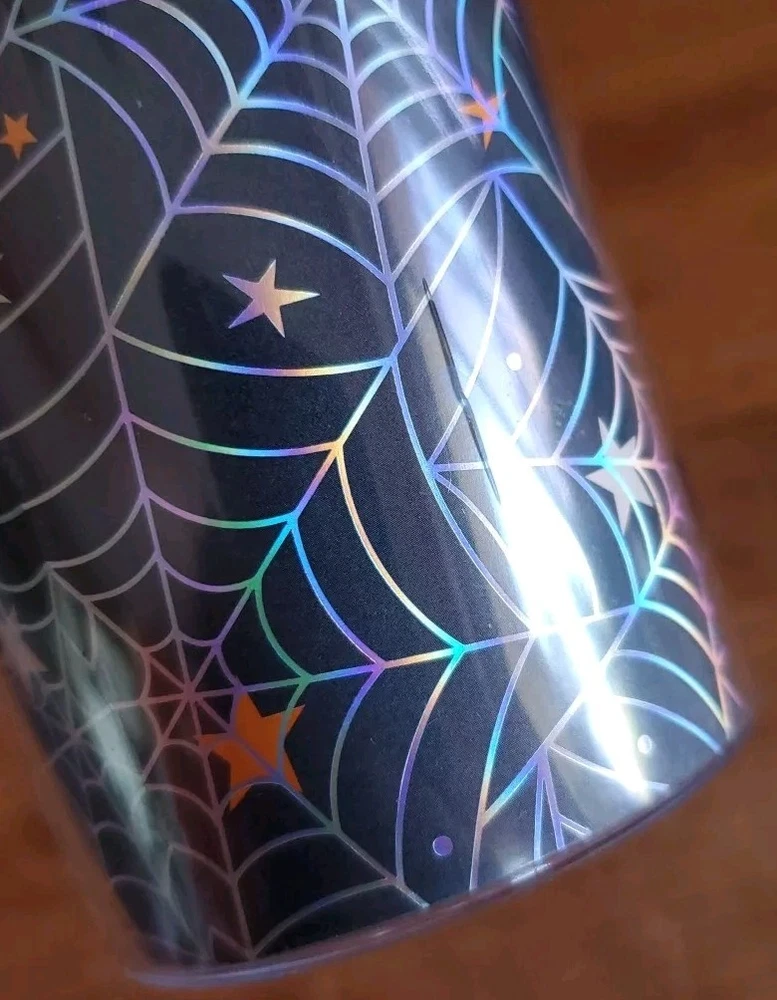 Halloween Spider Web Tumbler Plastic BPA Free Screw On Lid And Straw New condition never used Halloween spider web tumbler with screw on lid Does have a couple of cracks in outer clear plastic but does not affect the function (see pictures) but hard to see with the spider web design Also has a sticky patch where the label was which I'm sure will wash off with soapy water Thanks for looking Lot