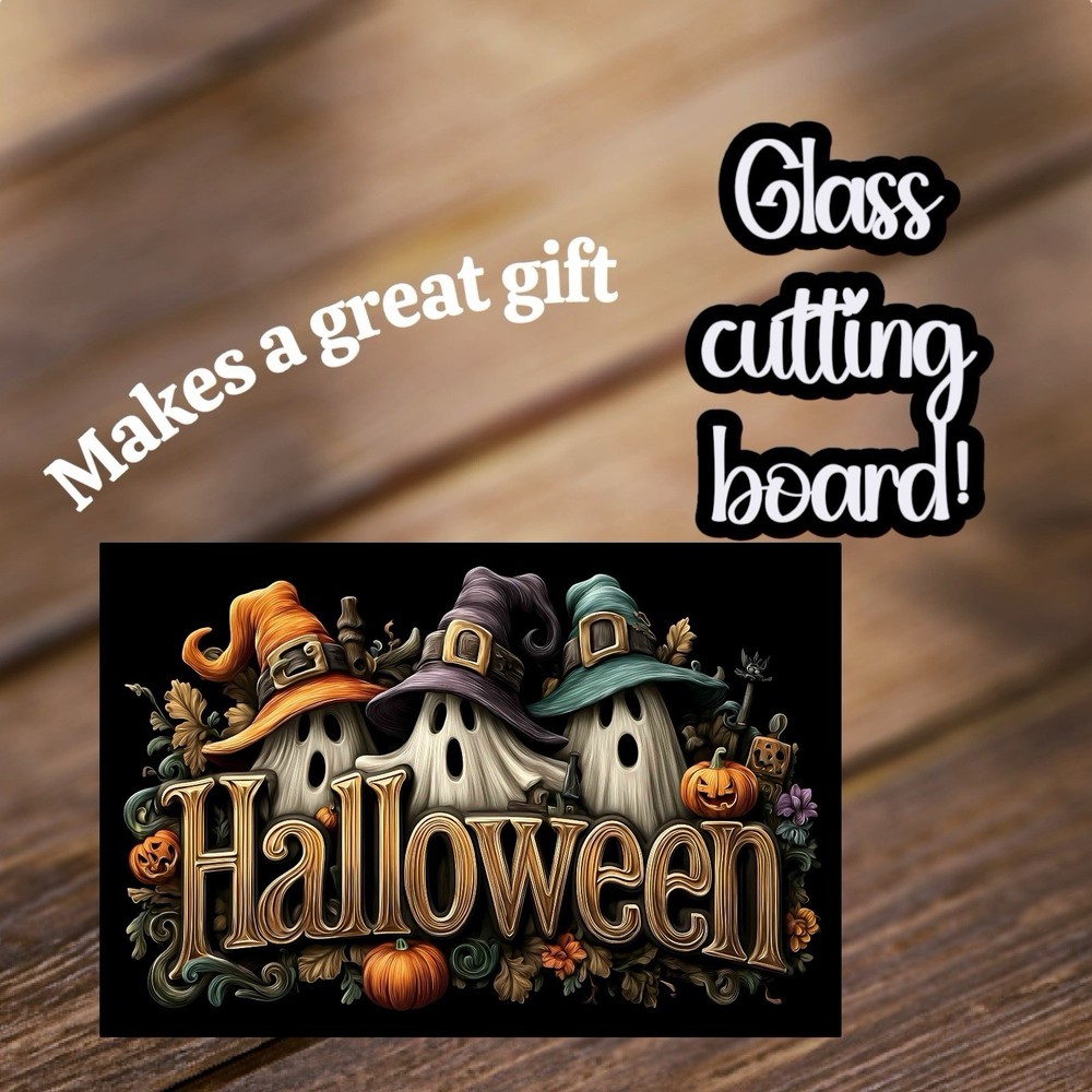 This Halloween glass cutting board features a traditional rectangular shape with a fun ghost theme, perfect for adding a spooky touch to your Halloween party decor. The multicolor design adds a playful element to the medium-sized board, which measures 11x8 inches. Made of heat-resistant glass, it is easy to clean and should be hand washed only. Ideal for cutting and serving during your Halloween festivities, this cutting board is a unique and functional addition to your kitchen or dining area. Made in the United States, it combines practicality with a festive design for a Halloween-inspired look. 11x8 inches. These are custom made to order keep in mind these are about almost 2 pounds to ship so generally cost close to $10 for shipping depending on where you are. I try to keep my price is fair but this is a heavy item thank you for understanding.