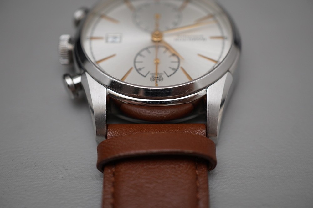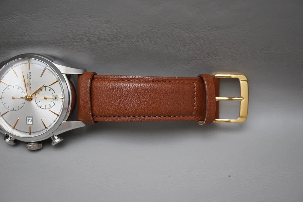 For sale is a Hamilton American Classic H32416581 Spirit Of Liberty Automatic Chronograph Watch Movement: Mechanical (Automatic) Condition: Used Strap: Aftermarket leather. Original leather/deployant clasp are included but is deteriorating from age/wear. Box: Original, some deterioration inside from age. Warranty card: Stamped 2014.7.5 Manual: Yes Approximate measurements: Case diameter: 42mm (excluding crown) Lug width: 22mm Lug to lug: 52mm Thickness: 14.75mm Please inspect all product photos in detail prior to purchase. Item does not include accessories beyond what is described and photographed.