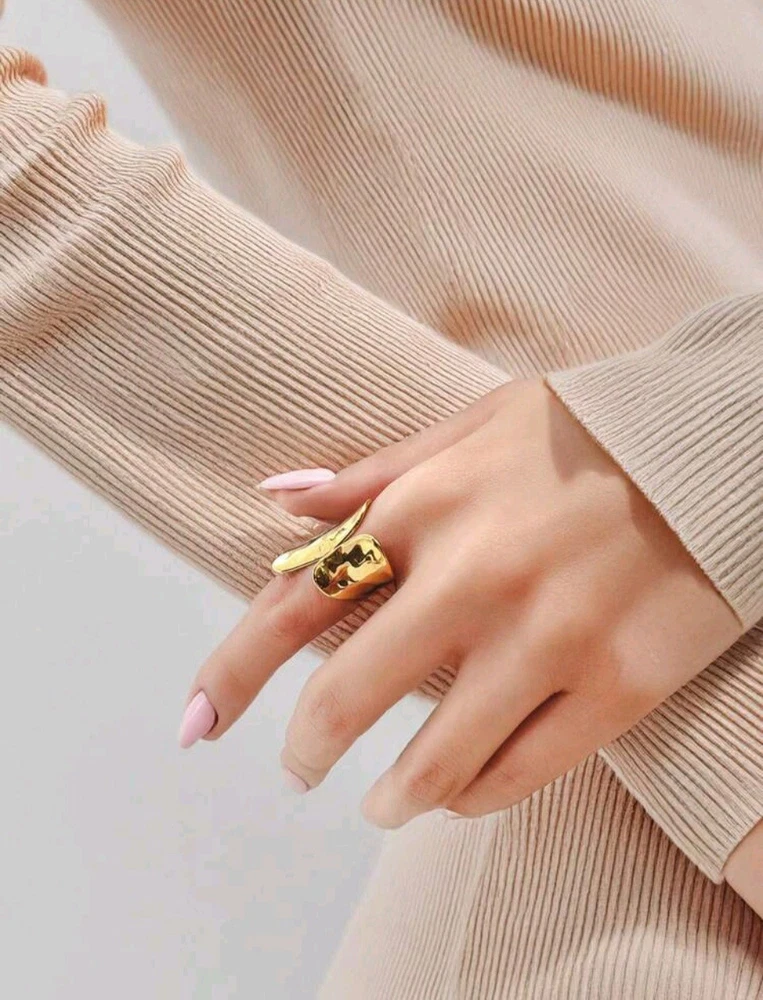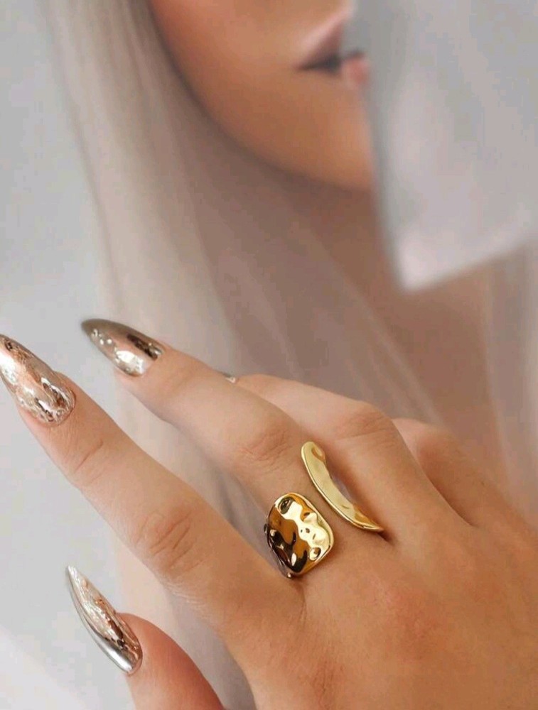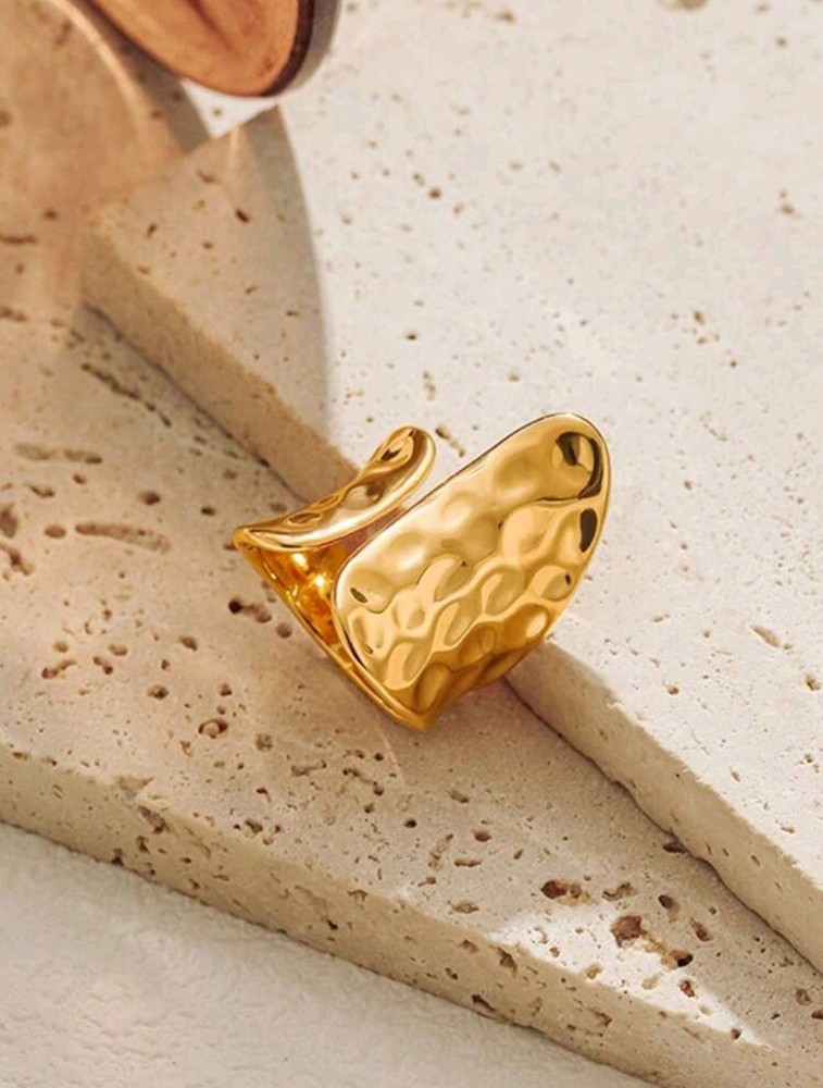 Embrace the beauty of asymmetry with this Unique Adjustable Asymmetrical Hammered Texture Ring, crafted from durable stainless steel and plated in radiant 14K gold. Its open, adjustable design ensures a comfortable fit while exuding effortless elegance with a modern twist. The hammered texture catches the light beautifully, creating an organic, handcrafted feel that makes each ring uniquely yours. Whether worn alone as a bold statement piece or stacked for a layered look, this ring adds a touch of artistry to any outfit. For those who appreciate the unconventional, this piece is more than just jewelry—it's a reflection of individuality and style.
