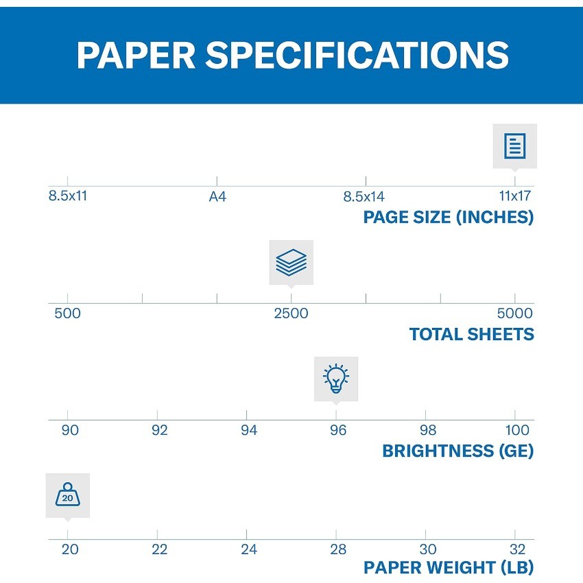 2,500 Sheets Printer Paper, 24 lb, 11x17 Inch, 98 Bright, Made in USA