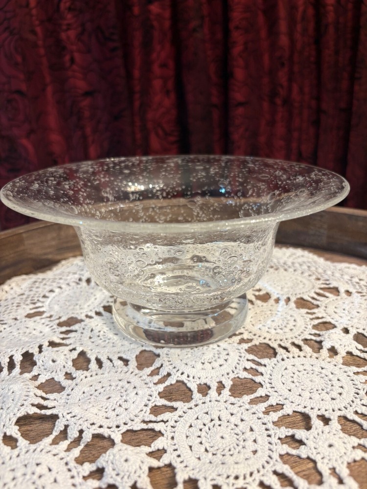 Hand Blown Clear Bubble Art Glass Pedestal Bowl 8x4 Inches