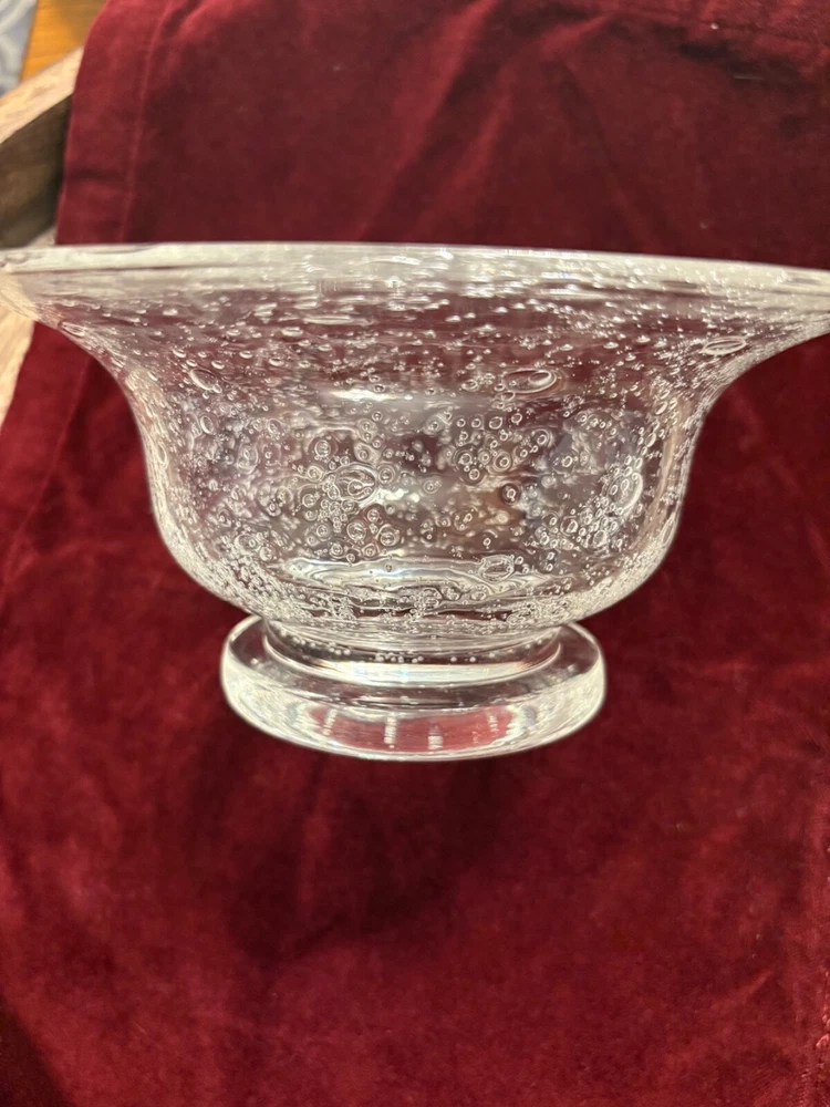 Vintage: Yes Type: Bowl Handmade: Yes Pattern: Air Bubbles Material: Glass Brand: Unmarked Time Period Manufactured: 1990-1999 Production Technique: Studio Crafted Antique: No Color: Clear Production Style: Art Glass