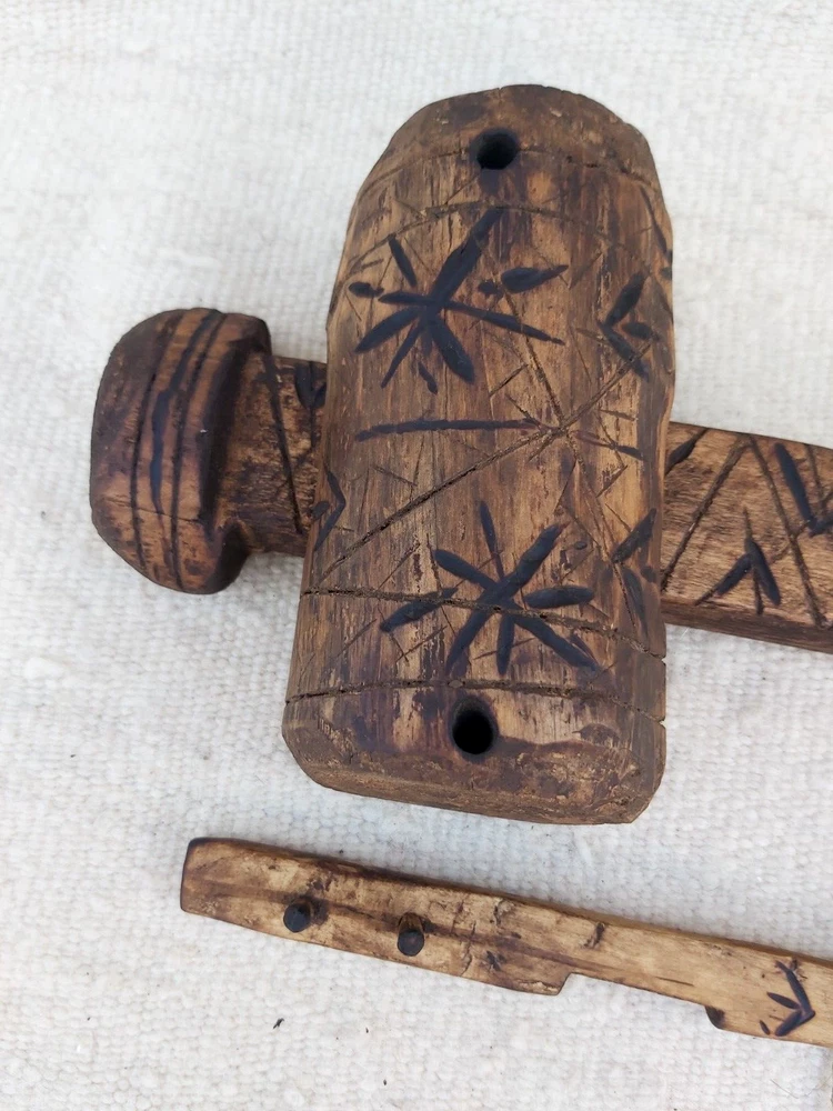 Hand Carved Moroccan Vintage Wooden Lock Door With Key, African Art Basic information: Material / (Wood) All item measurements in inches in the pictures along with a video of how to use it I present to you this beautiful African Berber masterpiece, which is a wooden door lock with key for African Berber tribe homes. This lock consists of two parts: one is a fixed vertical element often carved in an abstract, human or animal form that is attached to the door with iron pins. The second part of the door lock is a horizontal piece of wood that slides through the vertical piece where the wooden teeth fall into small slots that close the door. The doors had pointed corners that served as hinges and a carved wooden lock to keep them closed. Please see all pictures with reading this description. If there is anything I need to clarify , feel free to ask questions Shipping : The item is shipped the 2 days of payment receive. I shipped worldwide. Shipping time takes up 5 to 10 business days. Please do not open case on eBay before this period has elapsed or before you communicate with me if you have a problem. You need a faster delivery, shipping is expensive - contact me before paying. I ship your package to your eBay address. Please update your complete address including full name and phone number during checkout. I am not responsible for any wrong or undeliverable address. Items are generally shipped out within 24 hours to 48 hours after payment has been confirmed (Holidays, Sat. & Sun. excluded). We are not responsible for your country's customs duties. Handling time: 2 Business days Return policy: I check myself each product and sell only the best quality products. In any case, if you are not satisfied with the product, first, please contact me and I will do everything to your satisfaction. In any case you have a 100% Guarantee and refund.I accepted within 30 days, In its original packaging and on condition the item is its original condition as received. Feedback: I give immediate positive feedback for buyer as soon as payment is received for the purchase. Please leave a positive feedback, buyer's feedback is important for us, to grow our business on ebay. In any case of problem contact me right away before leaving feedback so I will do my very best to resolve any problem, and to make you satisfied Thank you for visiting and happy shopping