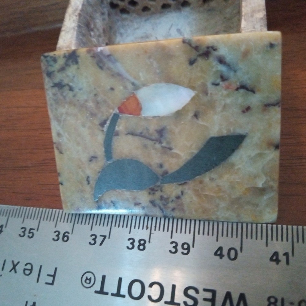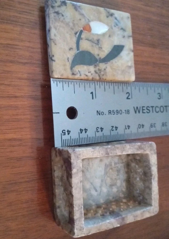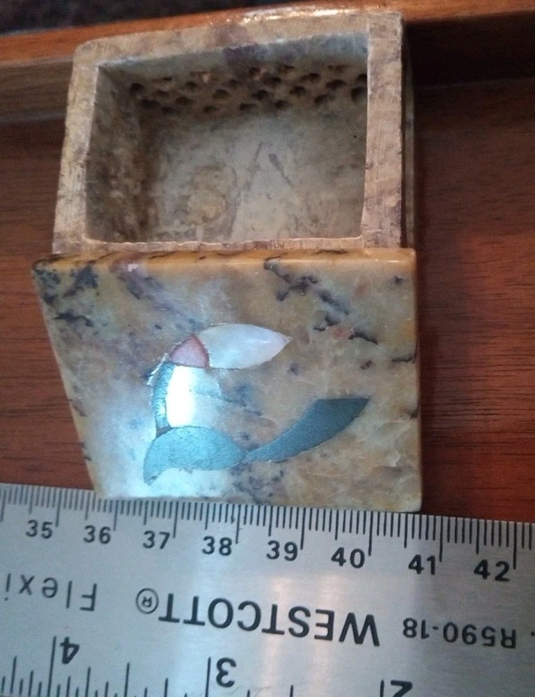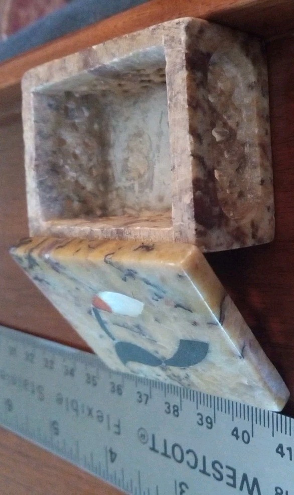 Hand Carved Soapstone Ring Trinket Box Mother Pearl Flower Inlayed Vtg India. Condition is Used. Shipped with USPS Ground Advantage.