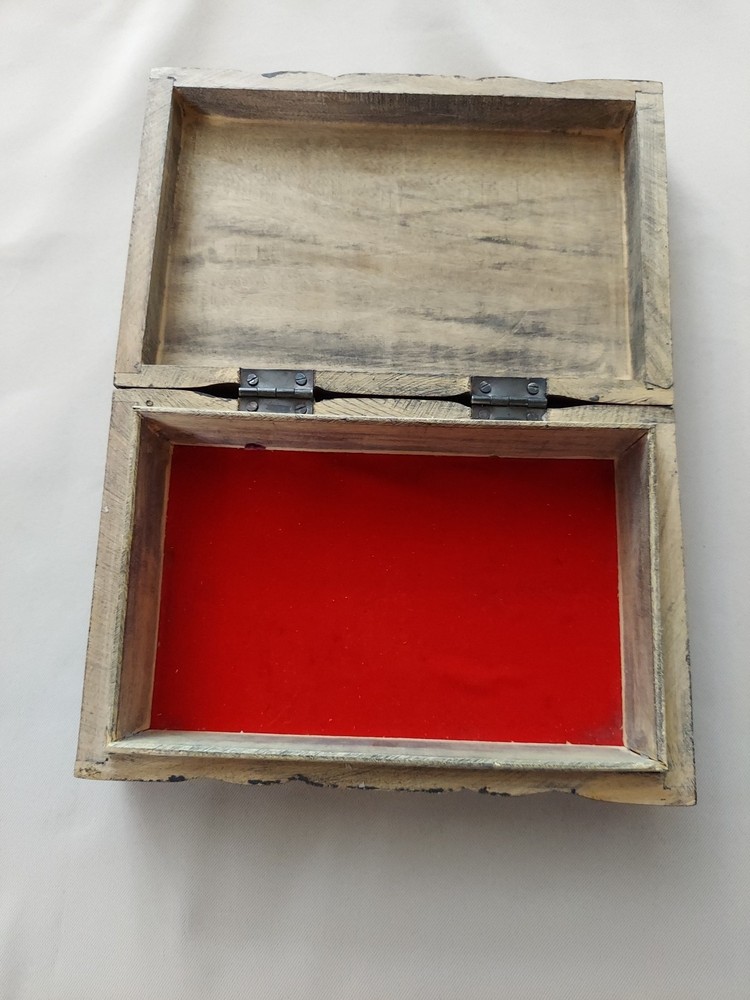 $ 2.22VINTAGE WOODEN TRINKET BOX WITH LID 6"in diam.