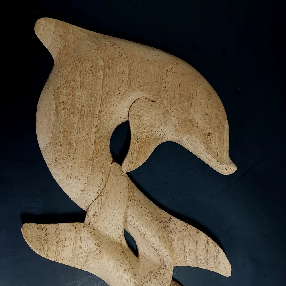 This handcrafted wooden dolphins placque is a must-have for any ocean or beach themed home decor. The dolphins are unfinished, giving you the freedom to paint, stain, or personalize them as you please. The placque measures 17" long, 8" at its widest point, 1½" thick, and weighs 10 oz unboxed. Made in Indonesia, it is a unique addition to any collection. Hang it on the wall, or display it on a mantle, bookshelf, or table to add a touch of beachy charm to your home. These wooden dolphins are perfect for those who want to bring the beach to their home.