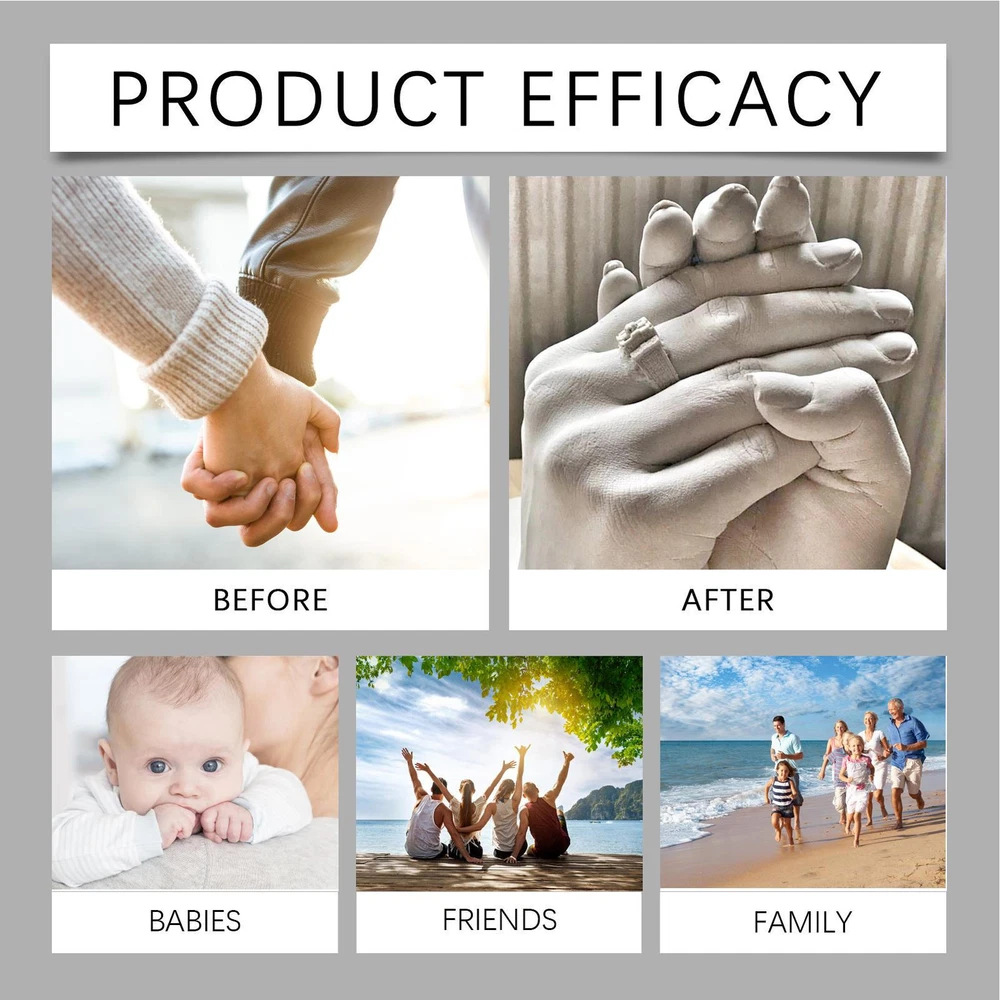 Hand Casting Kit Couples Plaster Statue Molding Kit Safe Alginate Molding Powder Bullet Points: Creative 3D Cloning: With our Hand Casting Kit Couples, replicate every detail of your loved ' hands in 3D. Craft self-made mementos from good-quality materials that ensure precision and beauty, capturing lasting memories for a long time. Straightforward Utilization: Effortlessly capture the warmth of your bond with our Hand Casting Kit for Couples; it comes with a clear guide, ensuring a simple mix-and-pour process, ideal for family fun. Safe Material: Create beautiful and lasting memories with our Hand Casting Kit for Couples. Our non-irritating soft powder makes it worryless for all ages to use, while the environmentally friendly materials ensure a safe and harmless process for a casting experience. General Purpose: Our Hand Casting Kit Couples is the perfect way to memorialize your precious occasions. Fit for birthdays, holidays, and more, it's adaptable for hands, feet, and couple casts--all resulting in extraordinary and sentimental presents that become uniquely cherished presents and experiences. Long-Lasting Mold: Keep your cherished memories forever with our Hand Casting Kit for Couples; it provides accurate replication of details, resulting in realistic and sturdy hand molds that remain deformationless even during long-term storage. Create a lasting memento with our Hand Casting Kit Couples! Perfect for bonding time with your loved people, our kit allows for easy replication of both adult and child hands. Made with environmentally friendly materials, it's harmless to use. The resulting realistic and sturdy hand molds can be used for various purposes. Make memories that will last forever with our kit! Specification: Product name: hand modeling powder kit Product Specifications:Clone Powder x1, Modeling Powder x1, Instruction Manual x1, Sandpaper x1, Gold Powder x1, Silver Powder x1, Stirring Stick x1, Stick x1 Product size: about 12.2x8cm / 4.8x3.14in Product features: environmentally safe, easy to operate, creative play Applicable scenes: art creation, modeling, beautiful ornaments, etc. Pack List: Hand Molding Kit x1 1.You can make a Credit payment via Paypal.Paypal will let you use MasterCard,Visa to pay. 2.Payment should be completed within 5 days after auction closed, or unpaid dispute will be filed for an closing auction.An unpaid case will be filled after 4 days. ● We strive for 100% customer satisfaction ! ● Positive Feedback is very important to us. ● We hope that you contact us immediately BEFORE you give us neutral or negative feedback, so that we can satisfactorily address your concerns. ● We promise to offer the lowest price and high quality produce. Dear buyers : ● Welcome to my store ! ● Your satisfaction is our top goal,we appreciate your patronizing. ● If you have any questions, please contact us before leave negative or neutral feedback, we will try our best to solve the issue to your satisfaction, thanks ! ● If you are satisfied with our service, please rate the details of the transaction (Detailed Seller Ratings) on eBay. ● Please always talk to us via ebay Message. ● We appreciate your business and look forward to growing our e-Bay sales with satisfied customers.