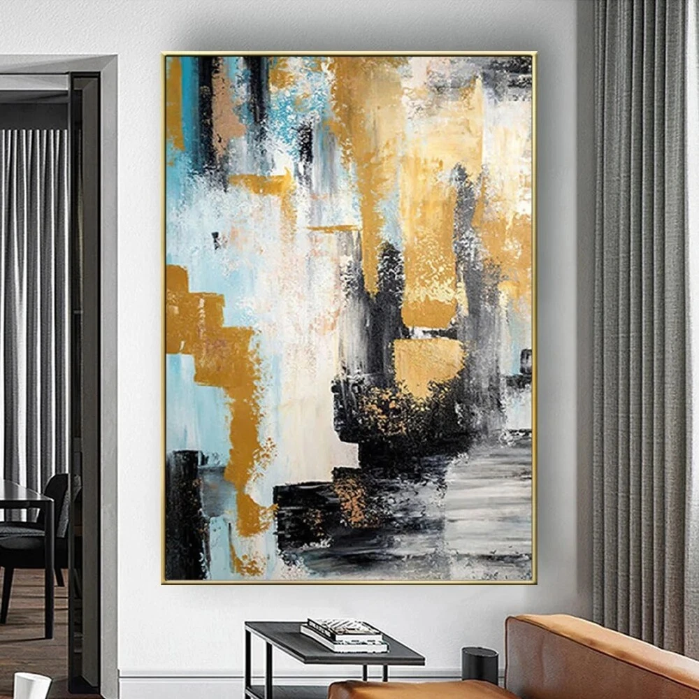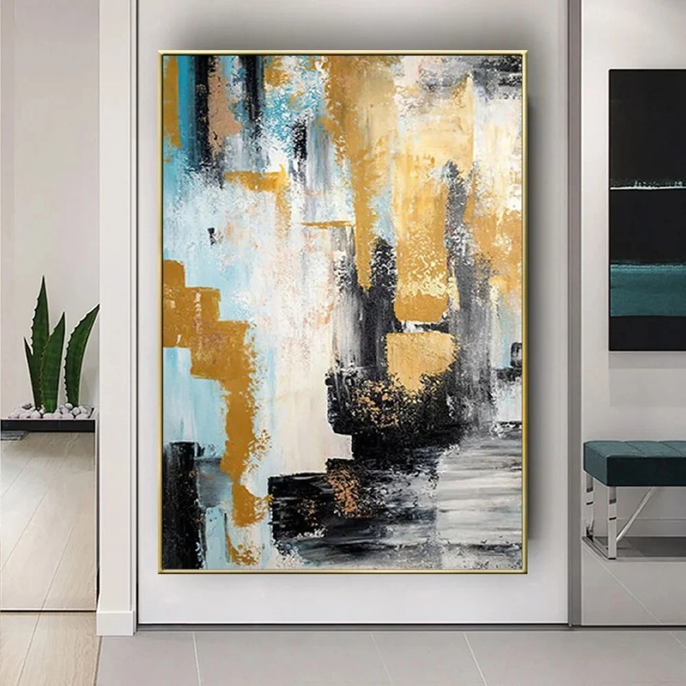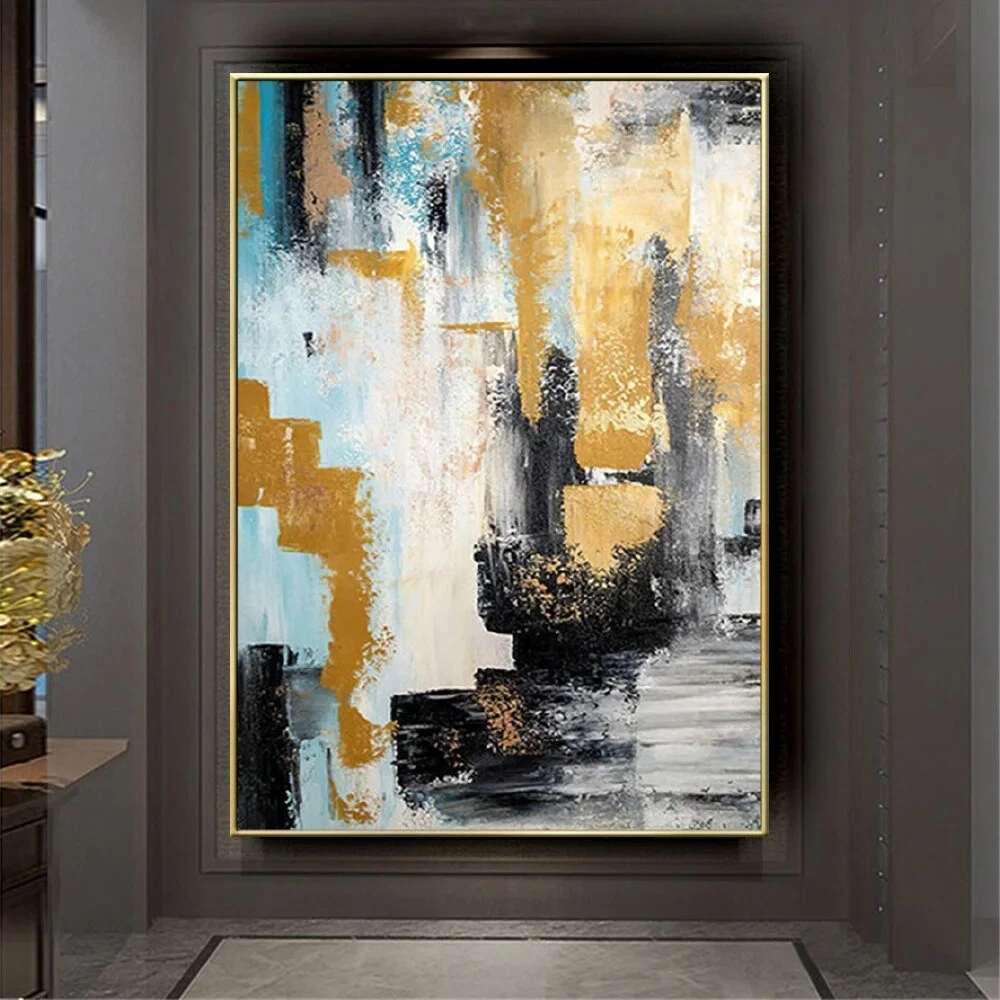Hand Drawn Canvas Oil Painting Custom Abstract Gold Foil Art Picture Living Room