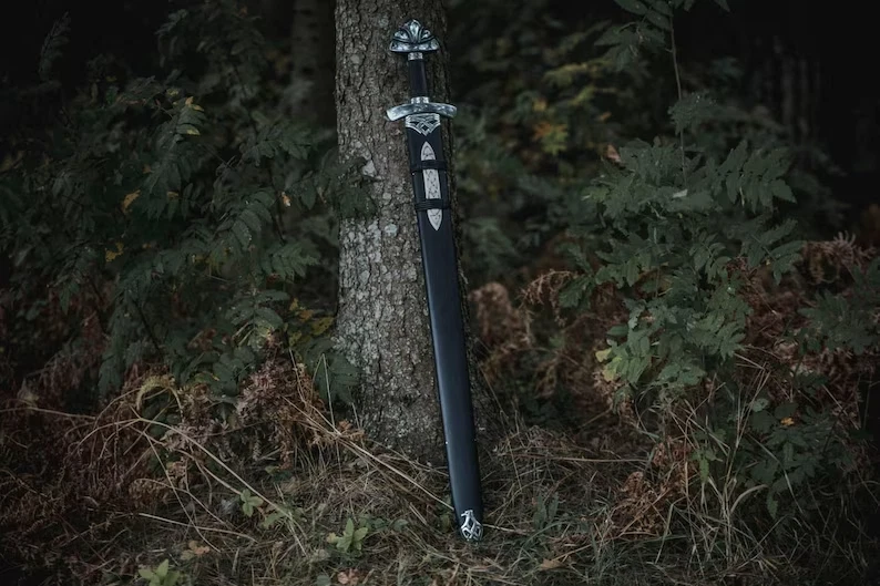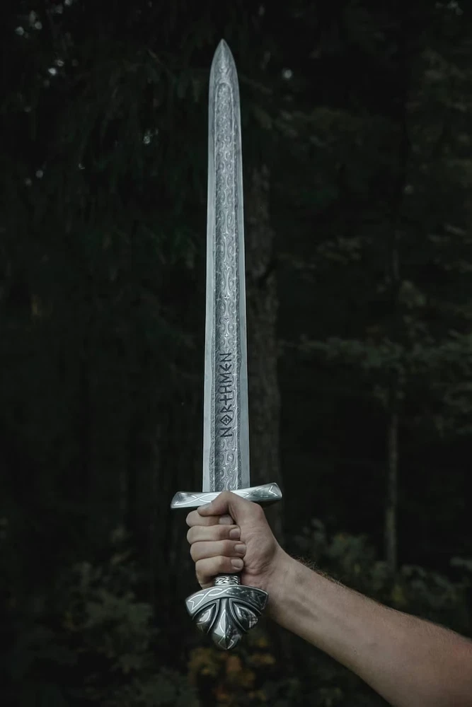 Hand Forged Damascus Steel NORTHMEN Sword, Medieval Viking Sword, Sword Of Kings, Custom Sword With Scabbard, Best Birthday & Christmas Gift Own a piece of Viking history with this magnificent Hand-Forged Damascus Steel Northmen Sword. This is not just a sword; it's a conversation starter, a collector's item, and a heirloom to be passed down for generations. Crafted with meticulous attention to detail, this sword embodies the legendary spirit of the Northmen. Imagine yourself wielding this blade, its gleaming Damascus steel reflecting the firelight, as you reenact epic battles or simply admire the superior craftsmanship. Here's what makes this Northmen Sword truly special: Hand-Forged Damascus Steel: The distinctive watered-steel pattern is not just beautiful, it signifies the blade's exceptional strength and durability. This time-tested technique creates a unique sword, no two exactly alike. Medieval Viking Design: Feel the power and history in your hands with this authentic design. The well-balanced blade, the sturdy guard, and the comfortable grip are reminiscent of the swords wielded by Viking warriors of old. Sword of Kings: This isn't just any sword; it's a worthy companion for royalty. The superior craftsmanship and regal design make it a showstopper worthy of a king's collection. Customizable (Optional): Make this sword truly your own with custom engraving. Immortalize a name, a date, or a meaningful inscription to create a one-of-a-kind heirloom. Complete with Scabbard: This beautiful sword comes with a high-quality scabbard for safe storage and protection. The scabbard is often crafted from genuine leather and may feature decorative elements that complement the sword itself. The Perfect Gift: History buffs: This sword is a dream gift for anyone fascinated by Viking history and lore. Sword enthusiasts: This exquisite piece will be a treasured addition to any sword collection. The man (or woman) who has everything: Surprise them with a gift that is both unique and unforgettable. More than just a sword, this is an investment in history and a symbol of strength and power. Order yours today and claim your piece of the Northmen legacy!