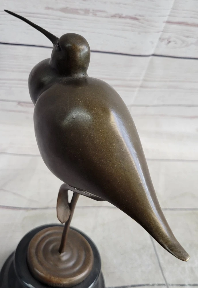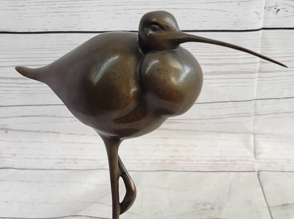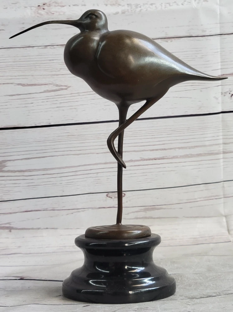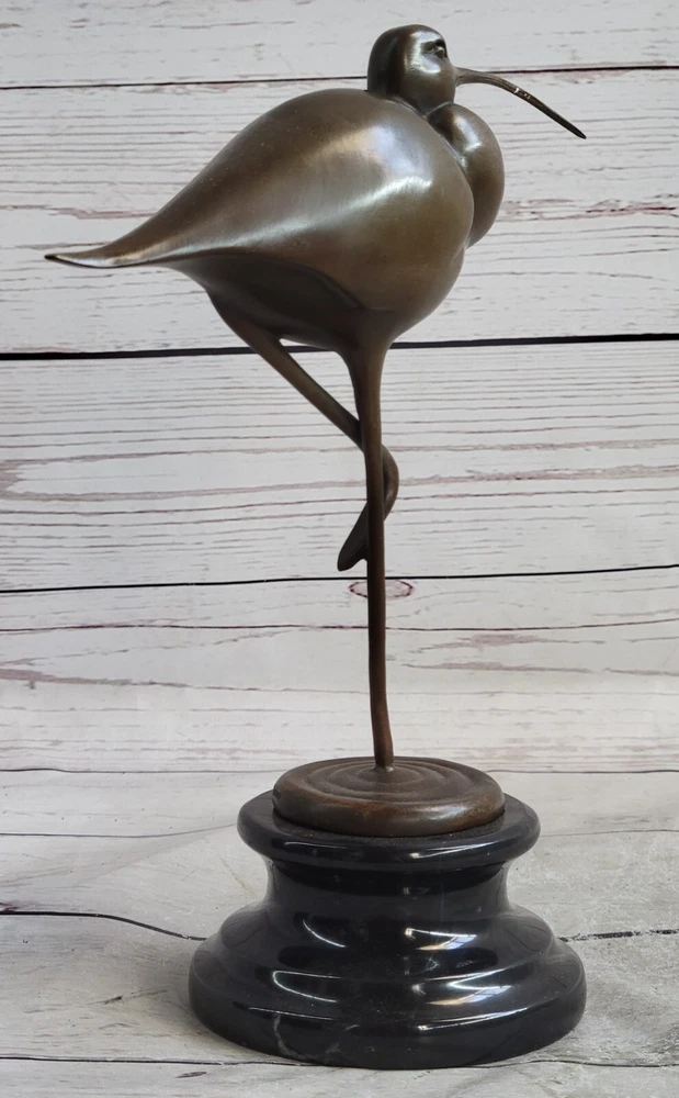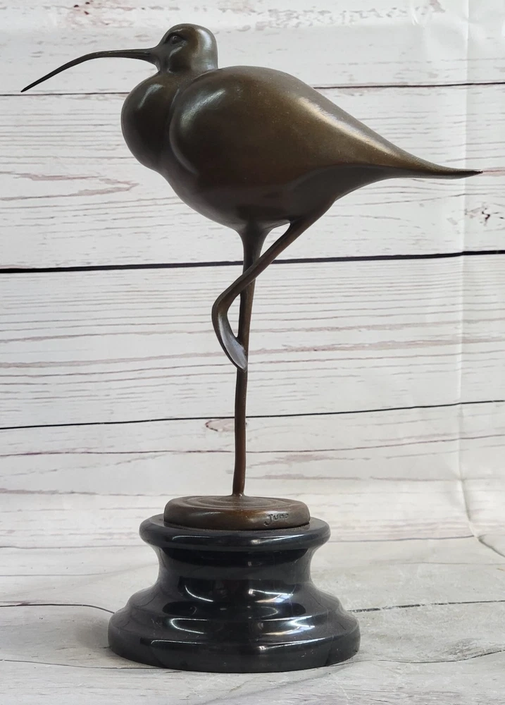 . Condition : This sculpture is in perfect condition. Bronze Dimensions with Marble Base: 9 1/2" X Width 9 1/2" Marble Dimensions: Diameter 4" Height without base:7" Weight:5 LBS Inventory:28K3202182 Introducing an Exquisite Bronze Sculpture: Behold this stunning figure of an exotic bird, possibly a Stork, meticulously crafted and handmade with exceptional attention to detail. The sculpture showcases intricate features such as the long beak and remarkably elongated legs, which add to its allure. Adorned with a hand-painted dark brown patina, it is an absolute delight for bird enthusiasts and a captivating decorative piece for any room. This 100% bronze sculpture is created using the timeless technique of lost-wax casting, ensuring its authenticity and fine craftsmanship. Enhanced with a brown patina finish, it exudes a touch of elegance. The sculpture is elegantly mounted on a detailed bronze plinth and rests upon a marble base, further enhancing its visual appeal. It proudly bears the signature of the talented artist Nick, adding a touch of authenticity to this exceptional piece of art. Egret Heron Wetlands Marsh Shore Coastal Wading Bird Bronze Marble Statue Art www.bronzhaus.com Video will open in a new window Using the eBay App? Paste link into a browser window: [isdntekvideo]