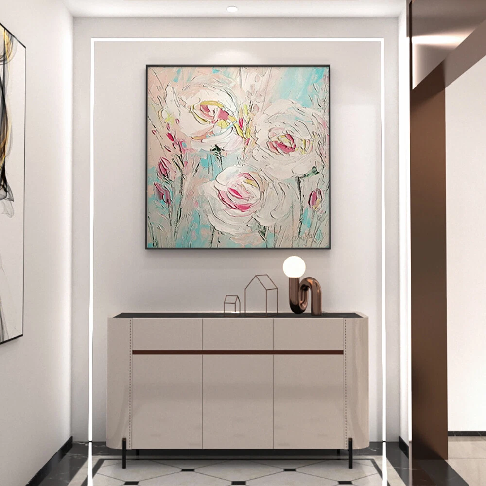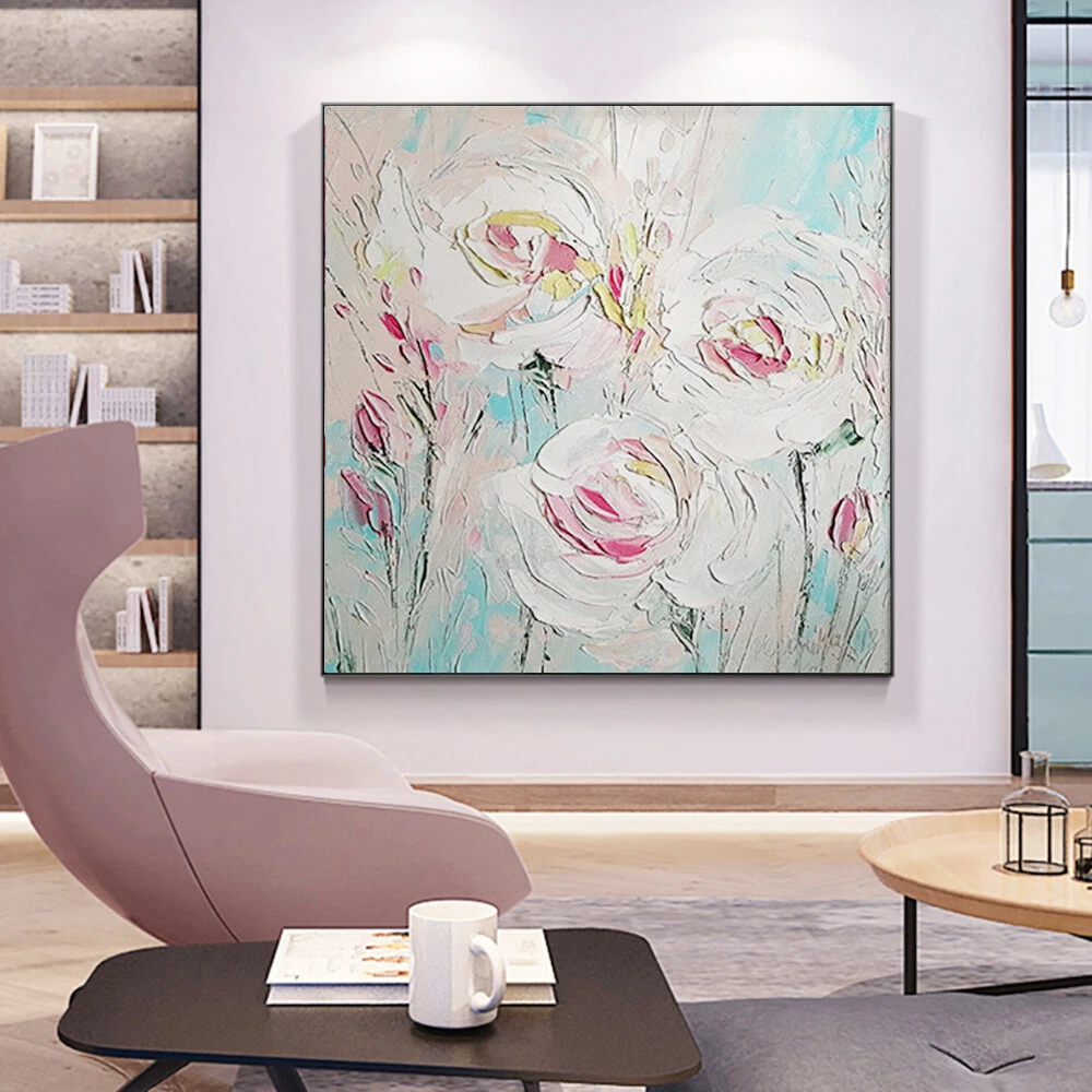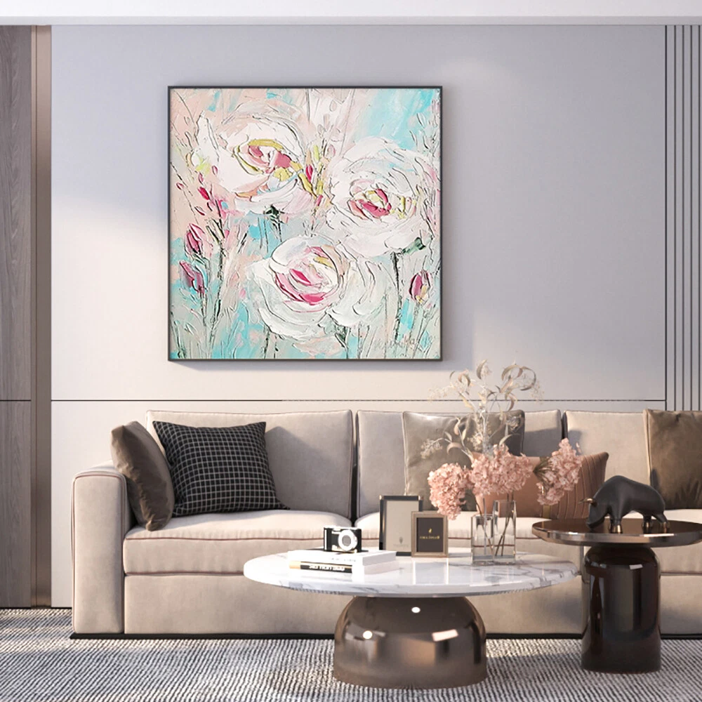 Hand Paint Texture Abstract Oil Painting Modern Canvas Art Wedding Flower