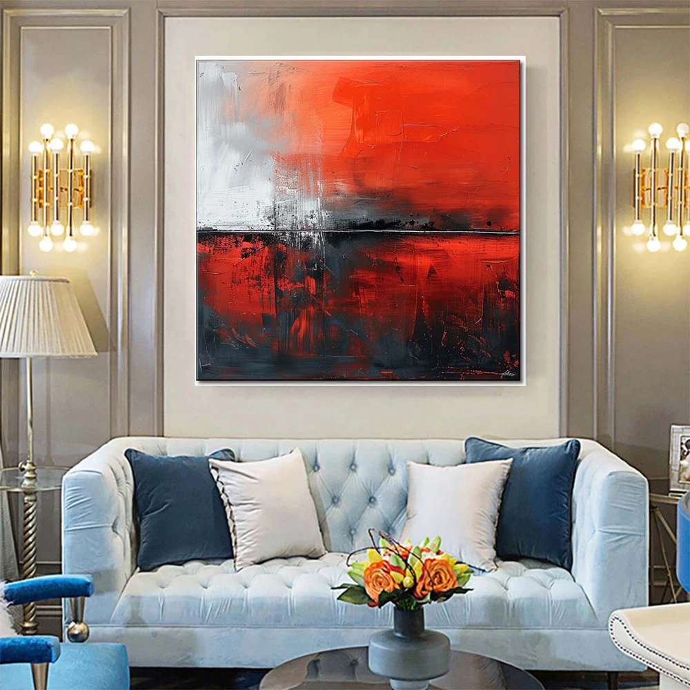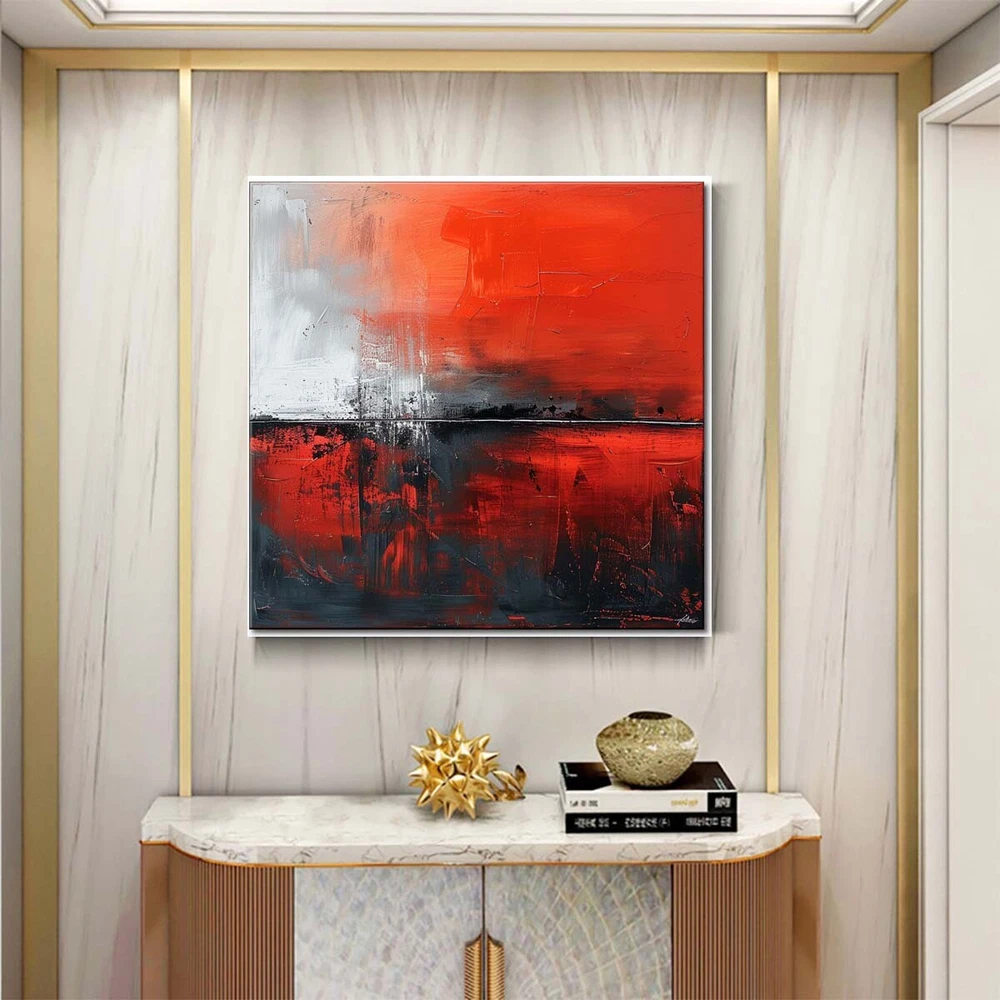 Hand Painted Abstract Black With Red Oil Painting On Canvas Thick Textured