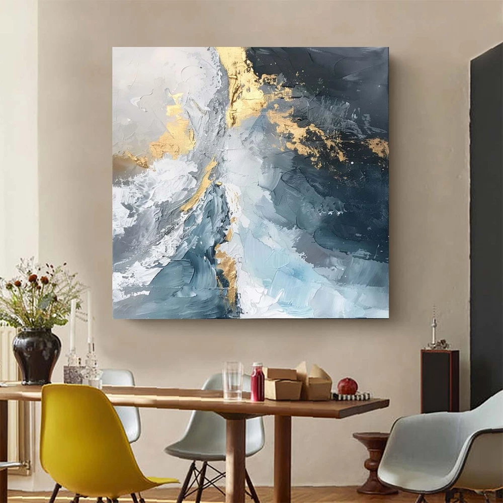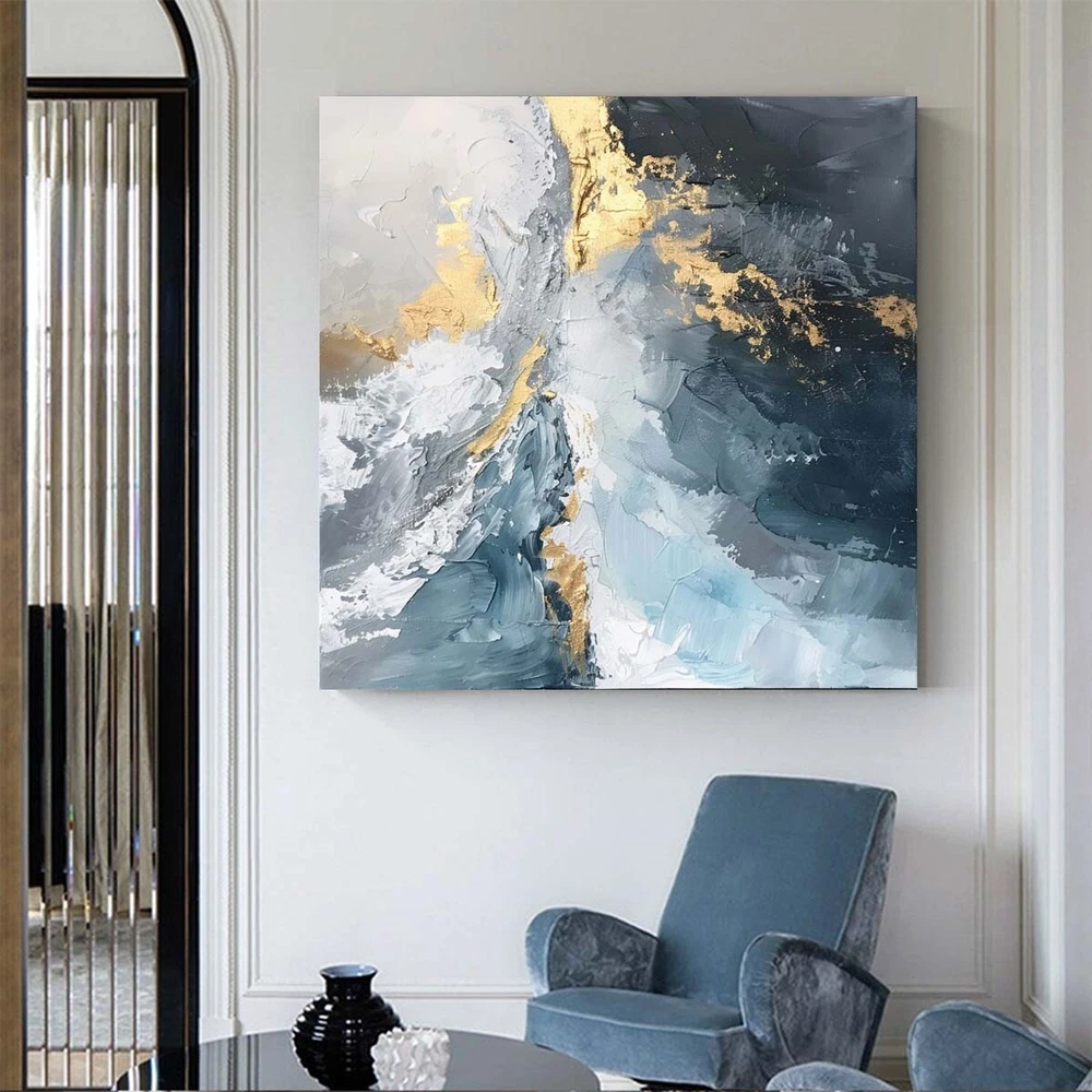 Hand Painted Abstract Blue Oil Paintings On Canvas Home Decor Wall Art Golden