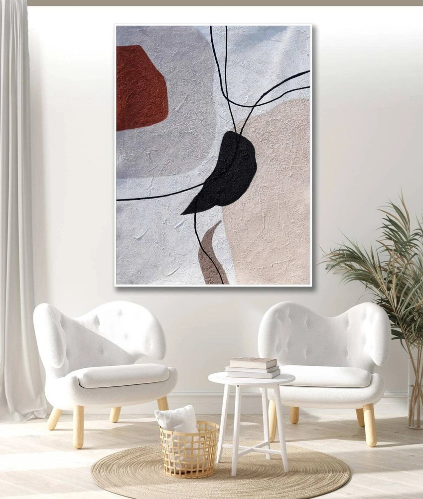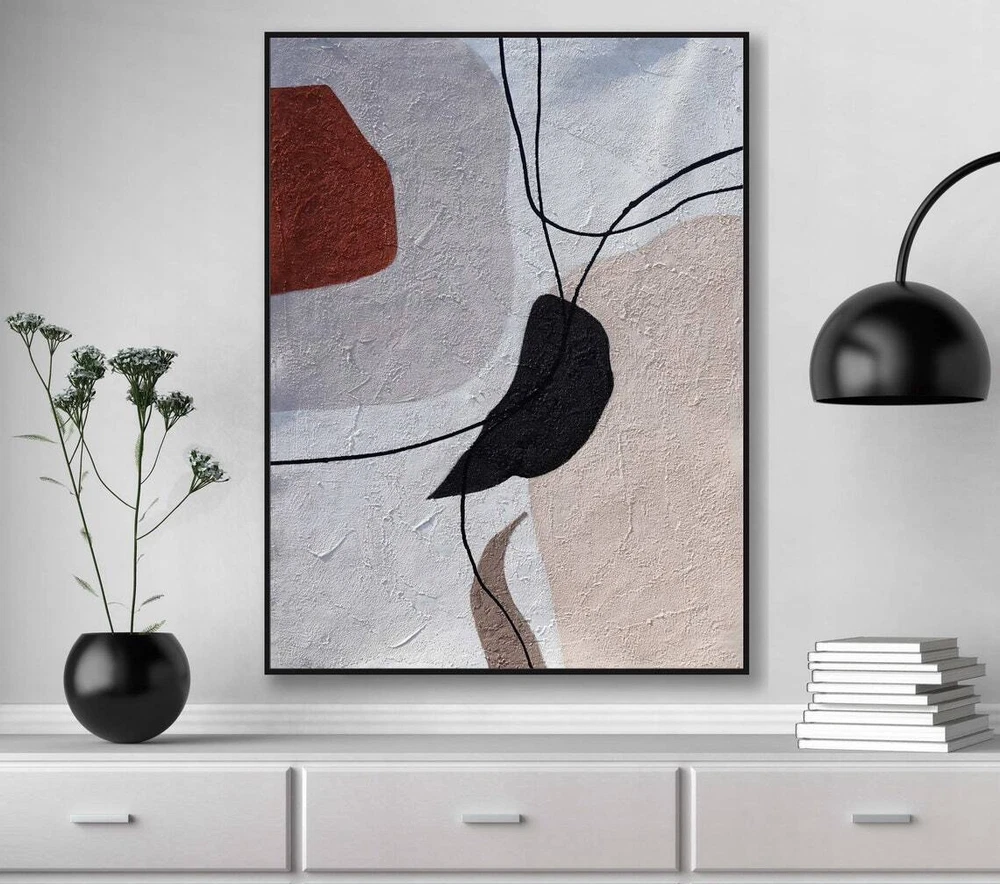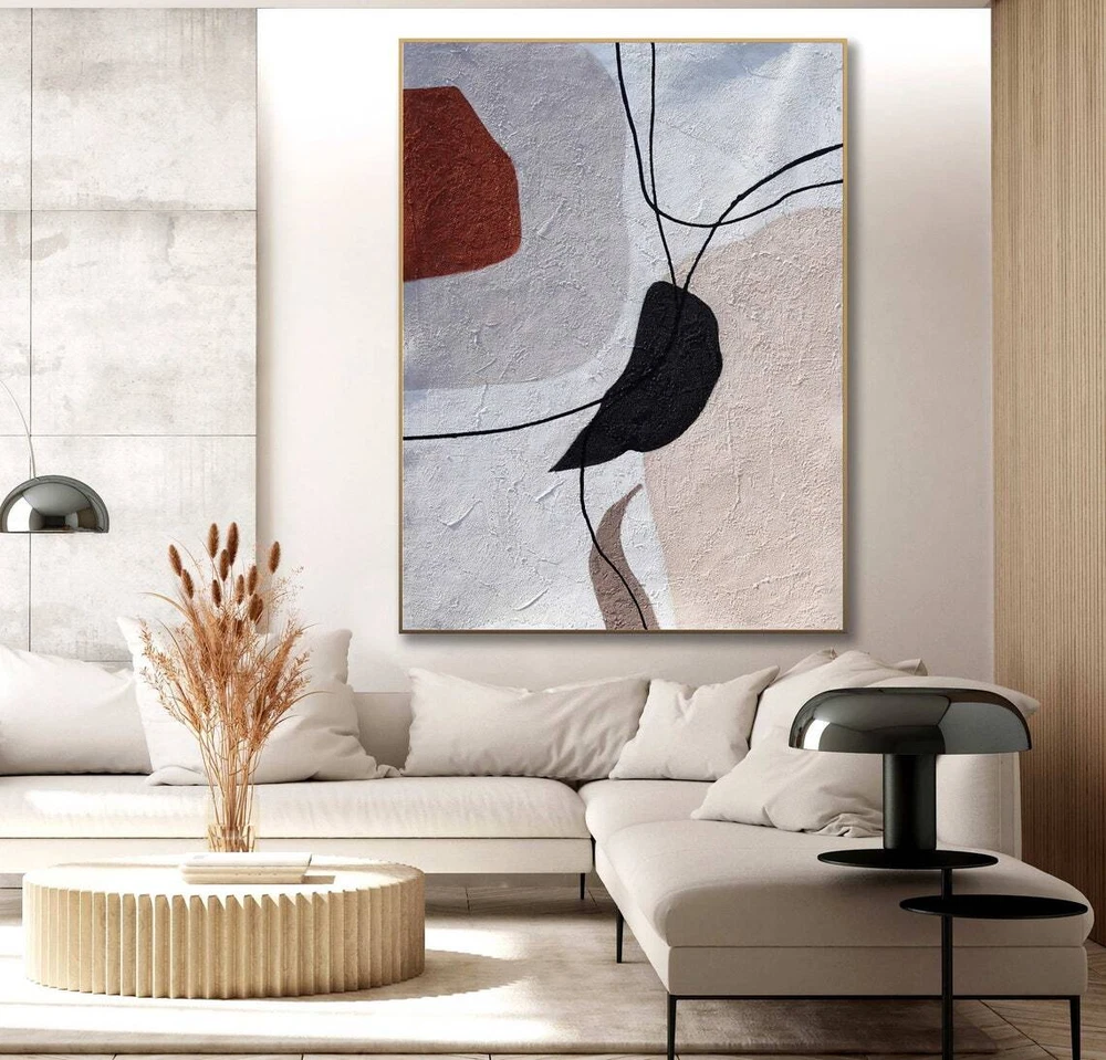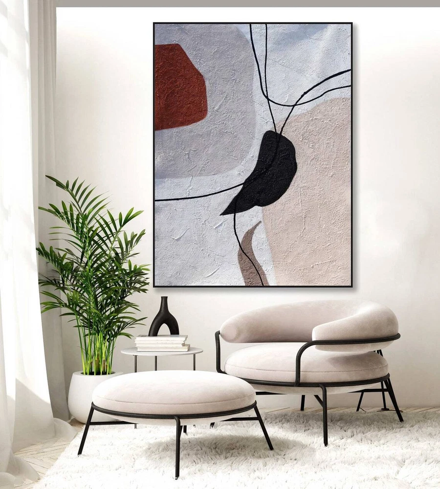 Hand Painted Abstract Painting On Canvas Scandinavian Mid Century Boho Style
