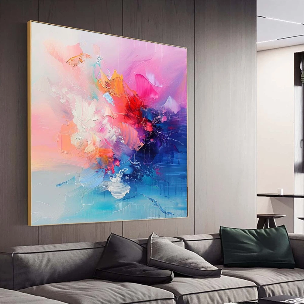 Hand Painted Abstract Painting Texture Acrylic Modern Art Oil Painting pink red
