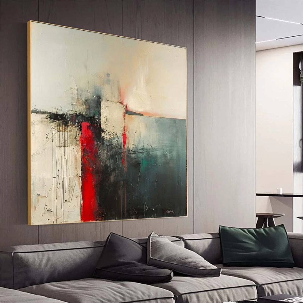 Hand Painted Abstract Painting Texture Acrylic Modern Art red Oil Painting black