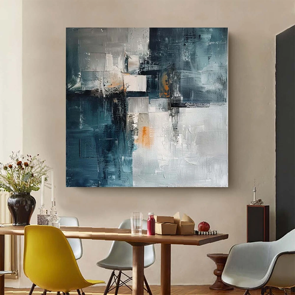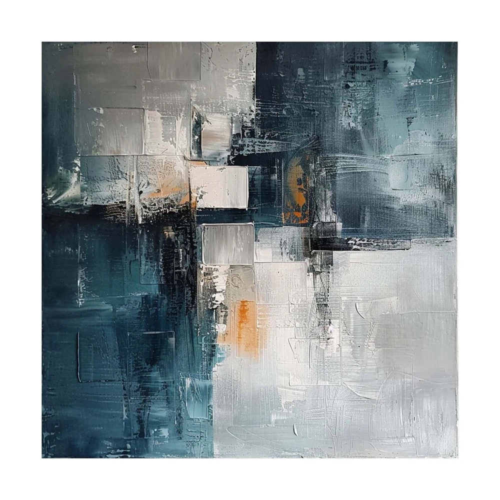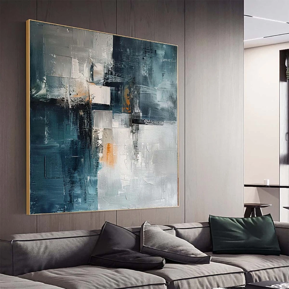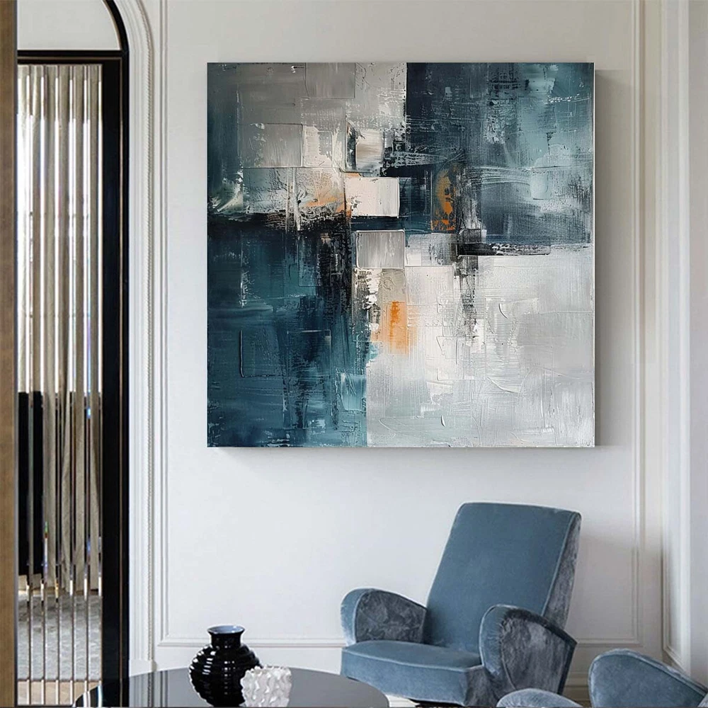 Hand Painted Abstract Painting Texture Acrylic blue Modern Art Oil Painting Gray