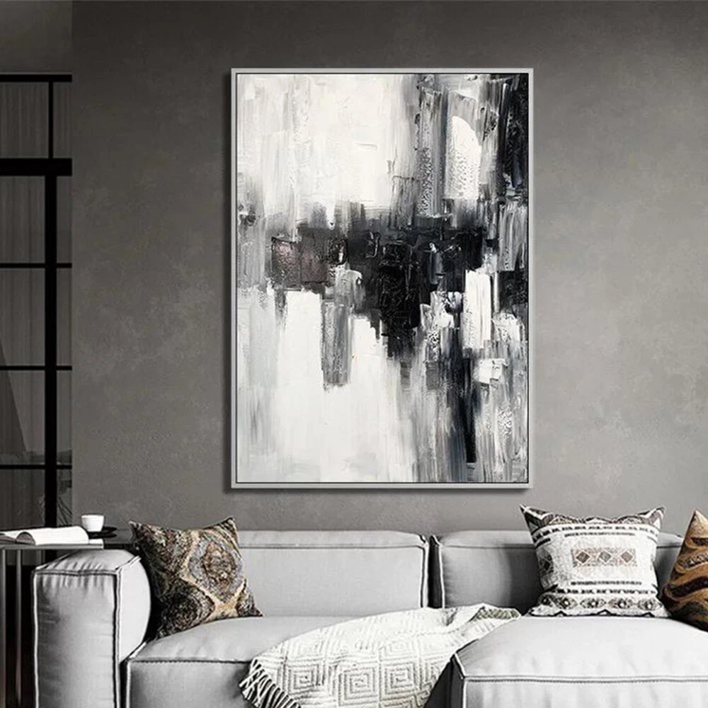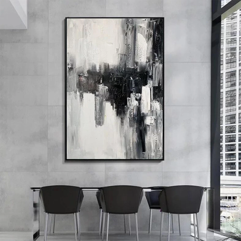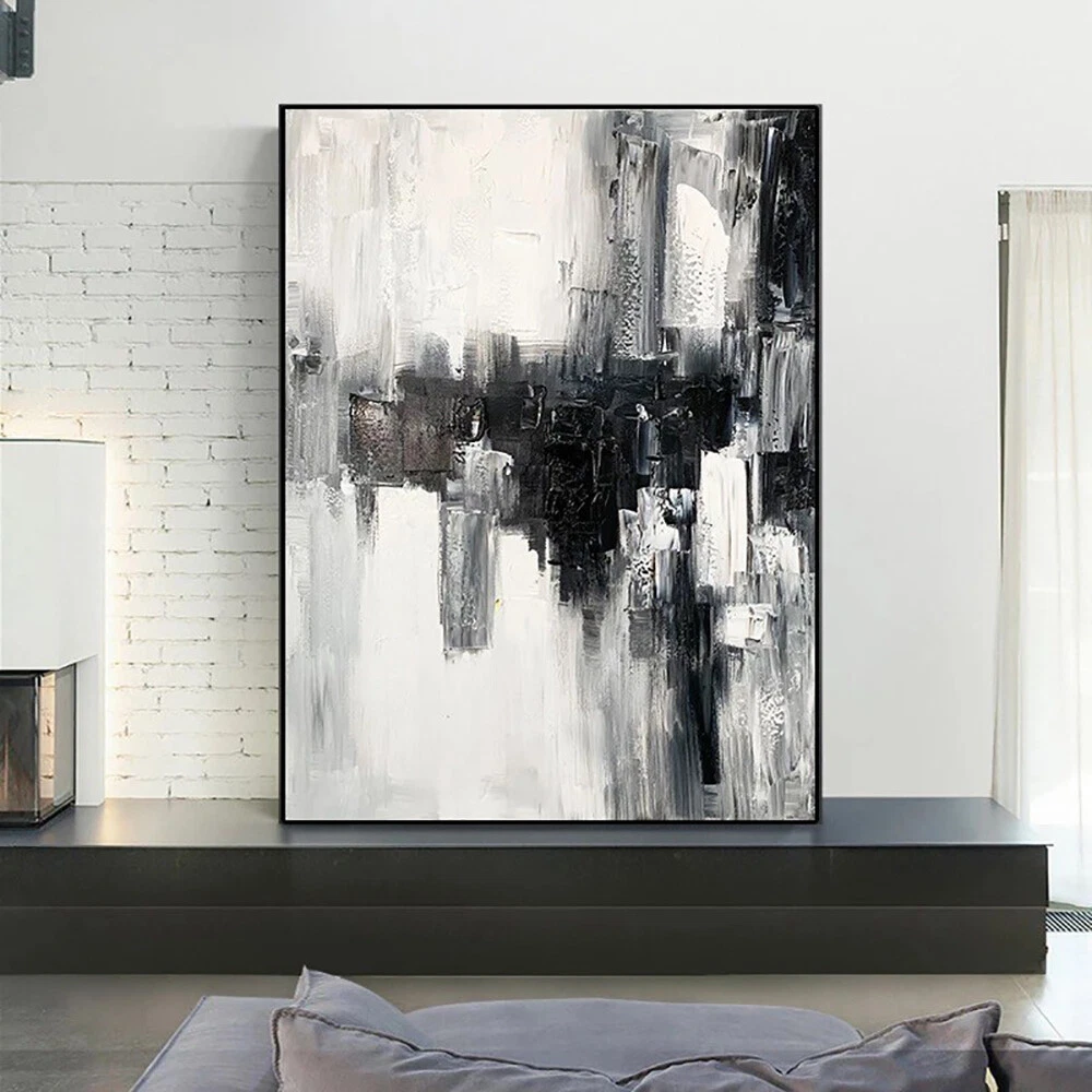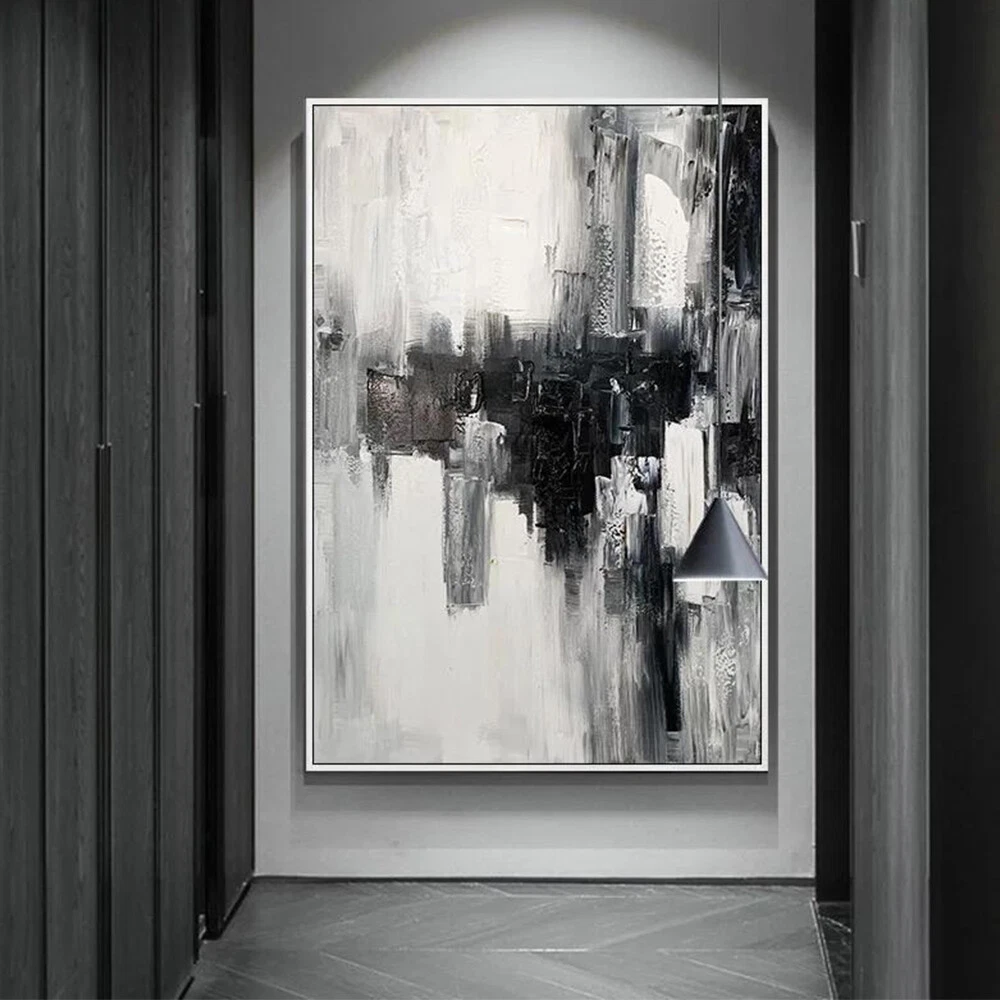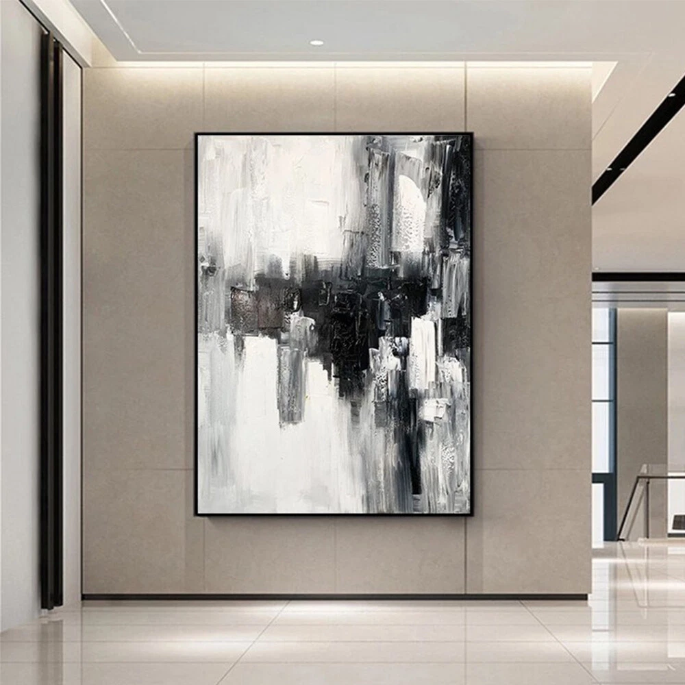 Hand Painted Abstract Wall Art Painting On Canvas Black White Picture Room