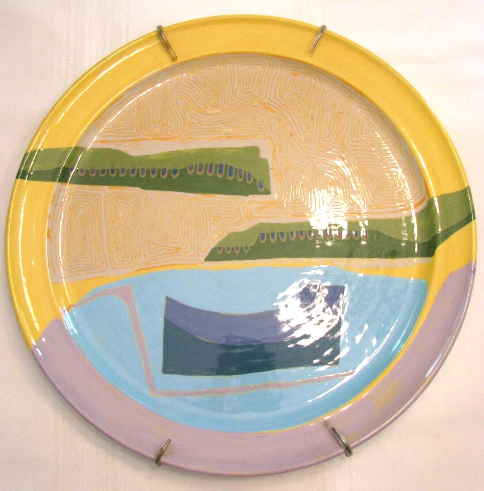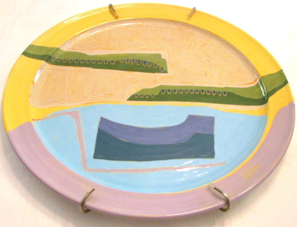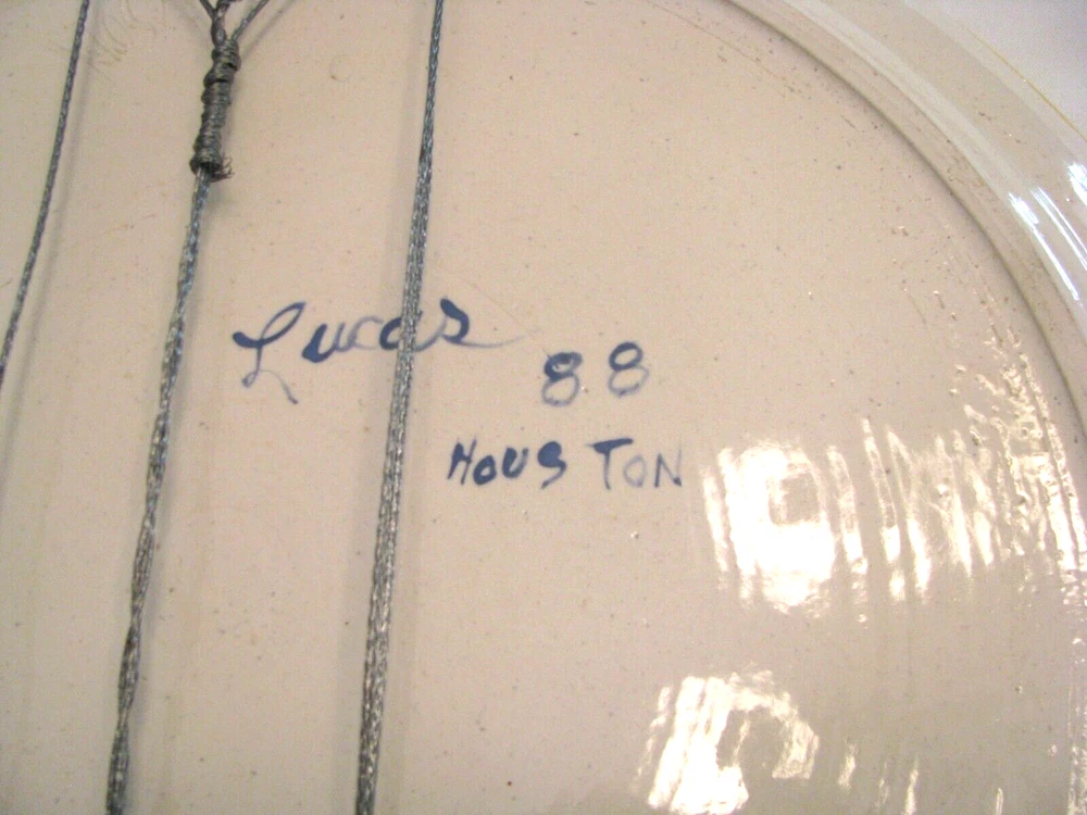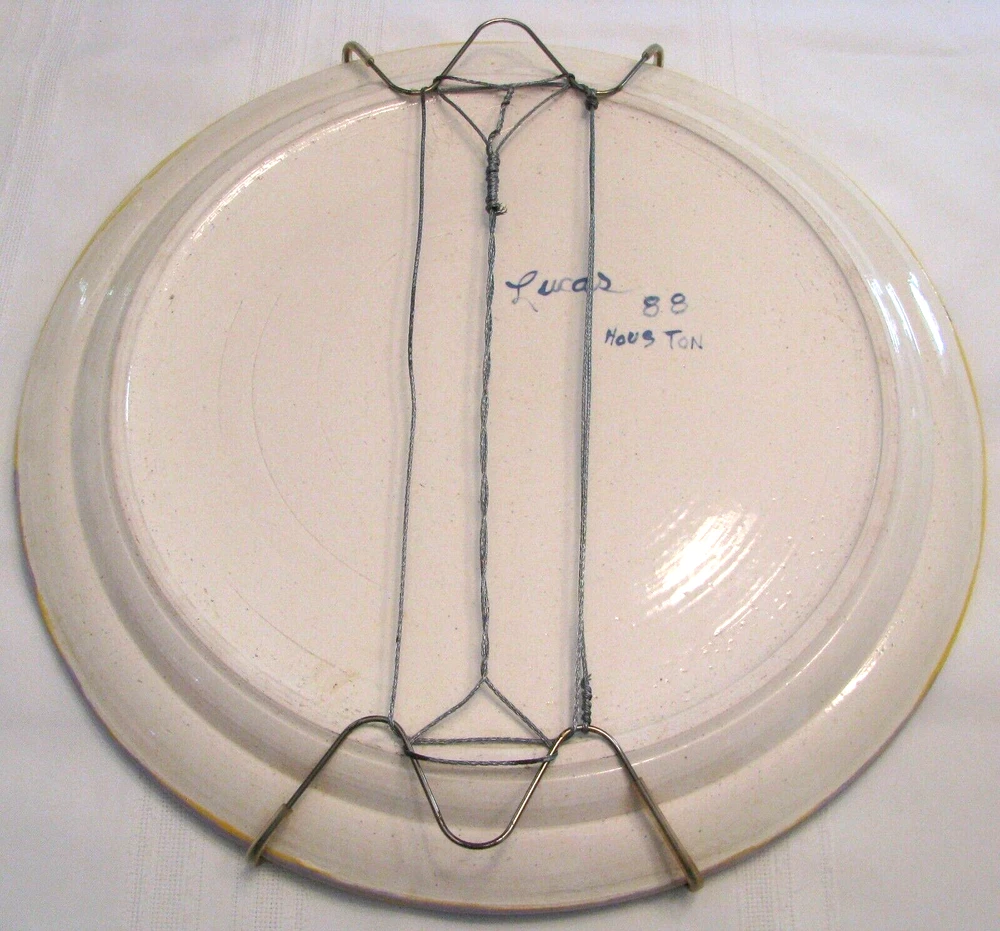 Up for Sale: A beautiful Abstract, Hand Painted, Ceramic Wall Art Plate/Platter. It measures 17 inches in diameter and comes with a wired plate hanger, so is ready for hanging. On the back "Jackson" is marked in the ceramic, and "Lucas 88 Houston" is written in blue paint. The plate is in very good condition with no chips, cracks, crazing, breaks or repairs found. See pictures. Details of Sale: All sales are "as is", so there should be no returns. I try to describe items as accurately and honestly as possible. Please see photos. If you have any questions, please contact me before bidding or buying. Shipping: Items are shipped with the United States Postal Service unless otherwise stated. I will combine purchases for shipping whenever safely possible. When item arrives, if there is any problem, please contact me, I want you to be happy with your purchase. Payment: Handled through eBay. Thanks for looking!