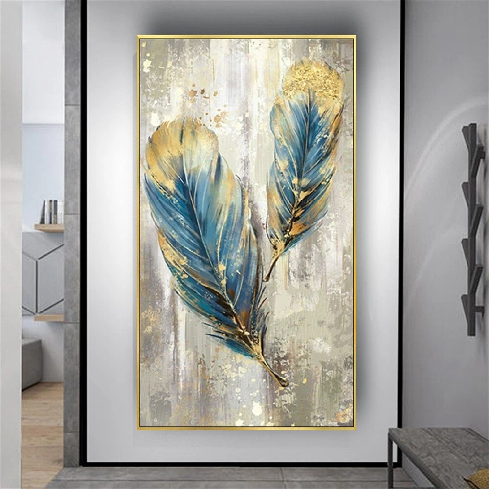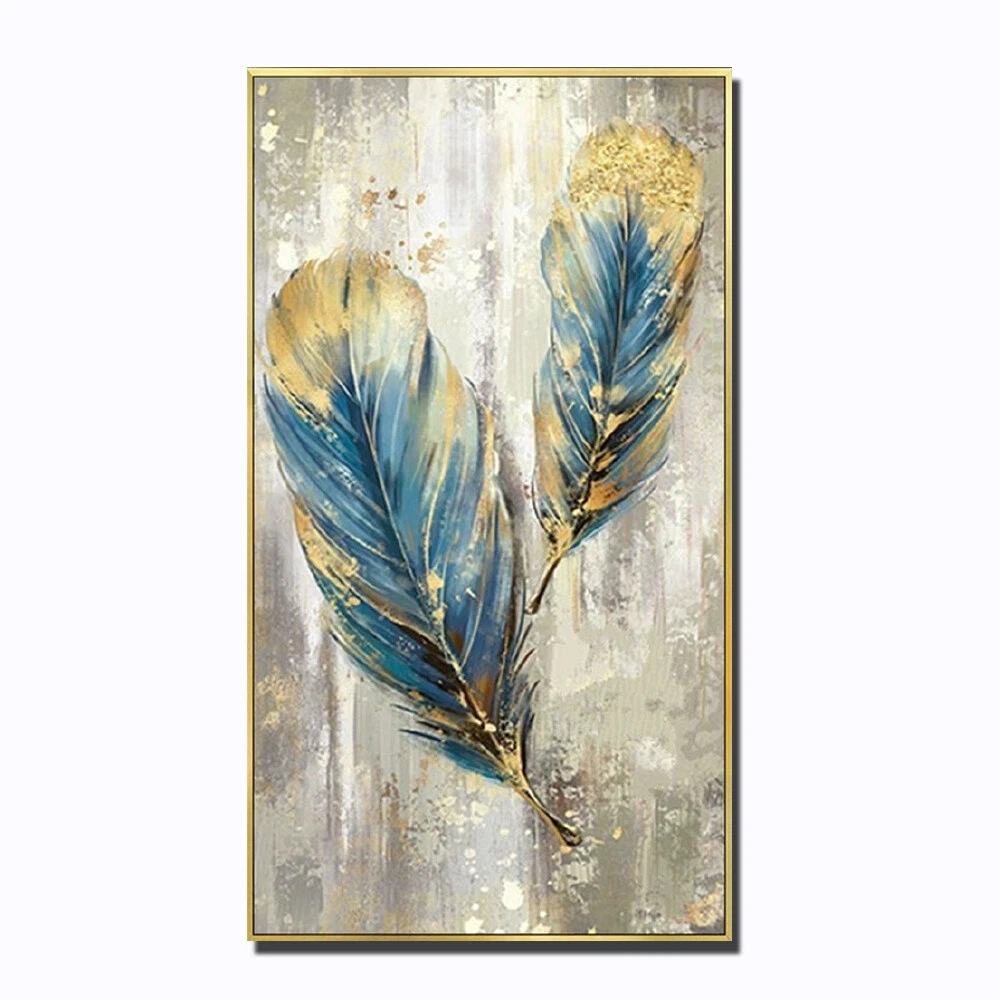 Hand Painted Feather Abstract Gold Foil Oil Painting Modern Home Decoration Wall