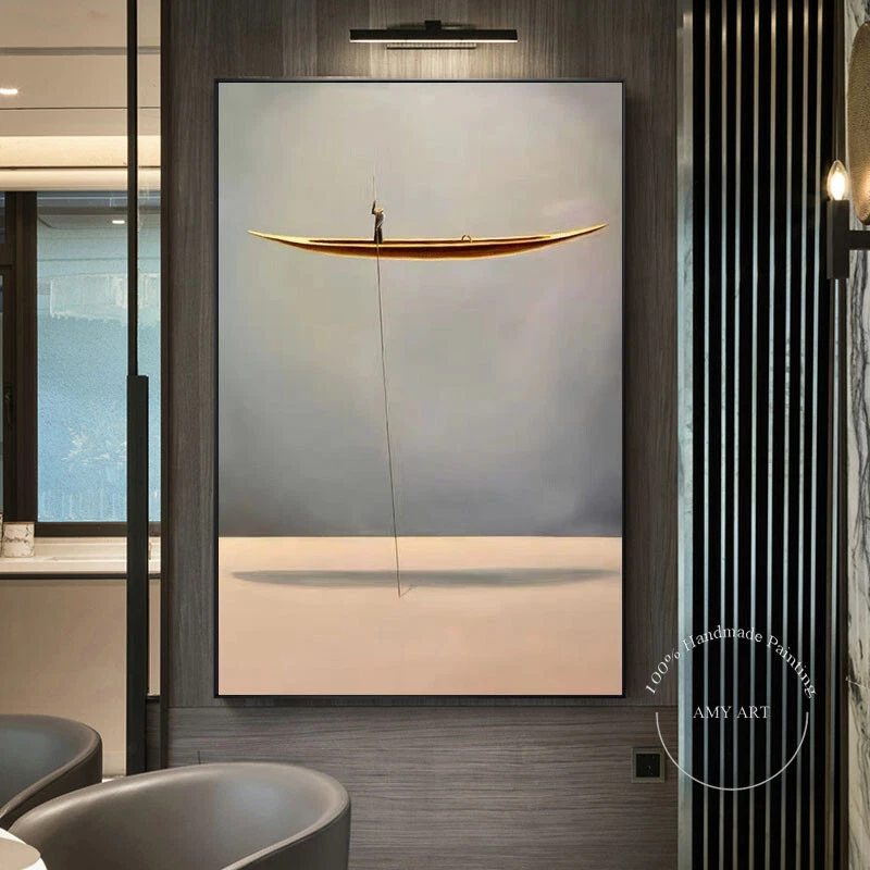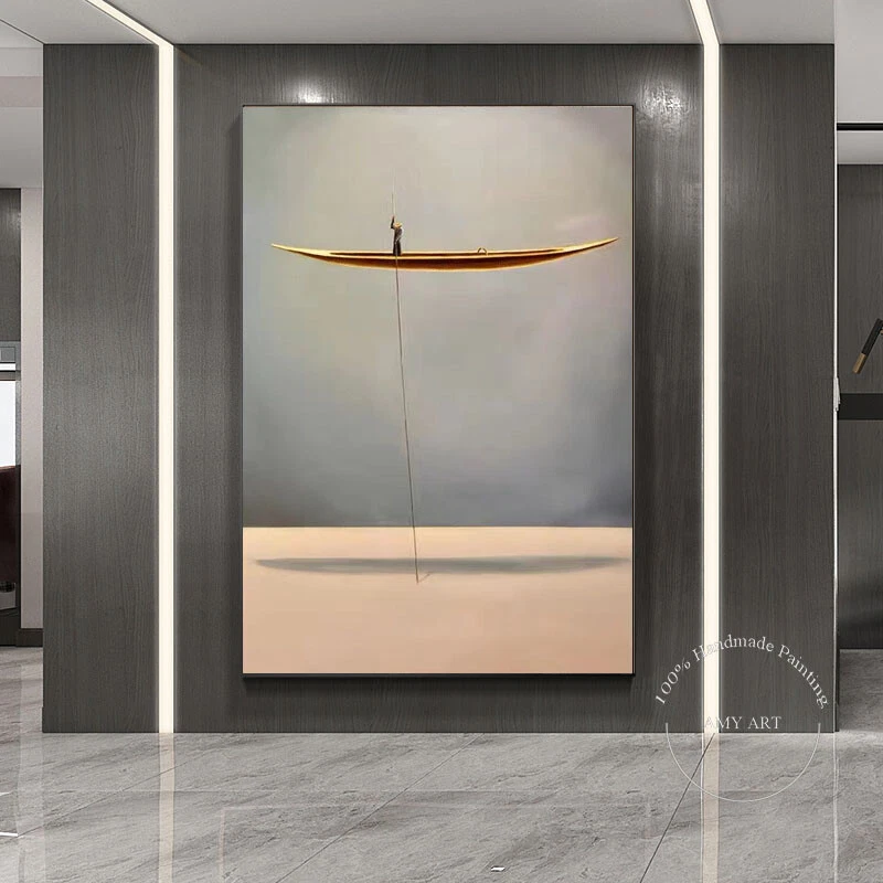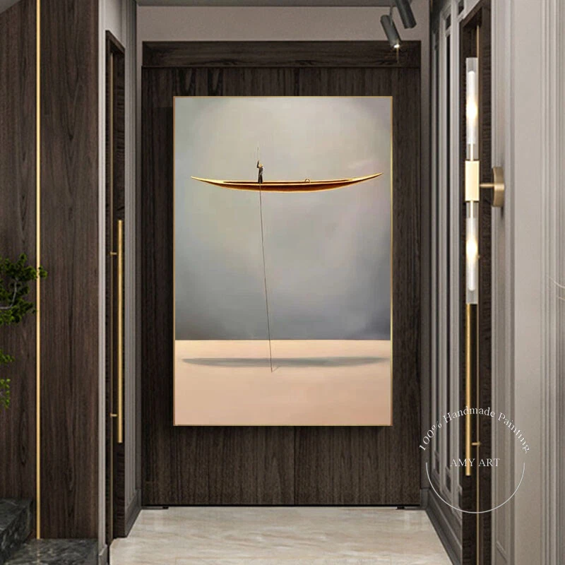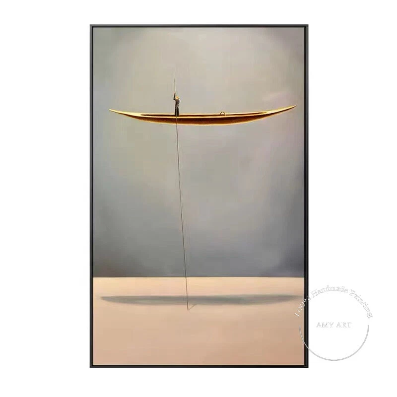 Hand Painted Oil Painting Wall Modern Abstract Gold Boat Canvas Painting Home