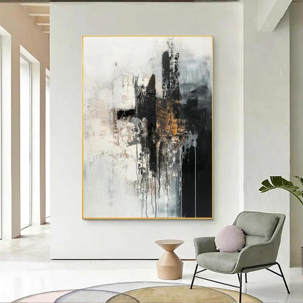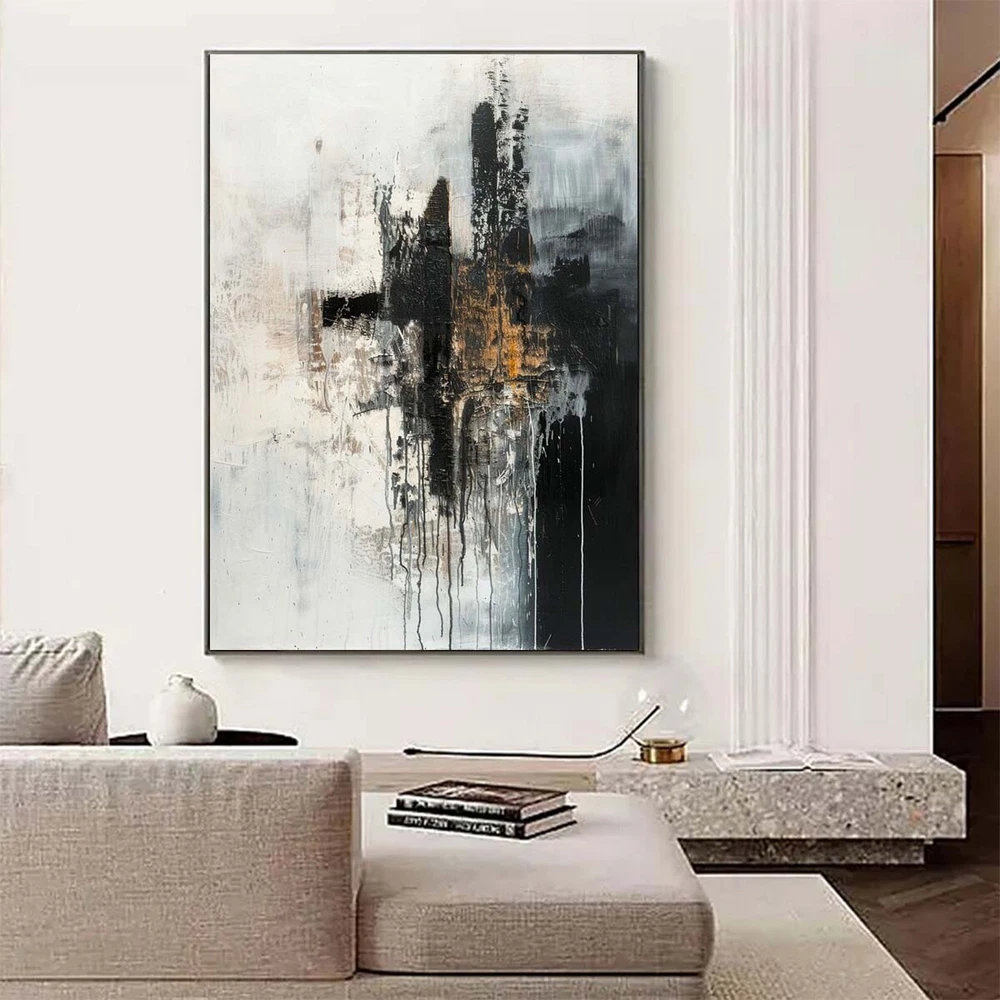 Hand Painted Texture Abstract Oil Painting On Canvas Wall Art Home Decor black
