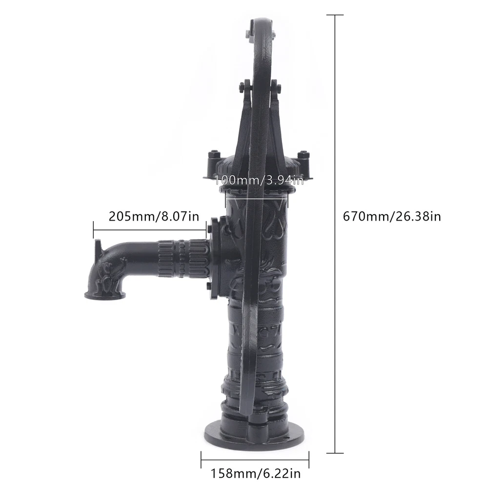 Hand Pump Cast Iron well water Pitcher Press Suction Yard Ponds Garden Kit Home Description This Pitcher Pump Is Made of Cast Iron with a Fine Texture That Is Not Easily Deformed. Therefore, It Is Very Durable and Has a Long Service Life. the Beautiful Floral Carving on the Surface and the Elegant Black Color Make This Pump More Unique and Elegant. with Such a Beautiful Appearance, It Can Be Well Installed in Gardens, Parks and Other Places. Key Features Extended Spout: the Spout of Our Pitcher Pump Is About 8.07inch Which Is Slightly Longer than Normal Ones. This Allows Water to Be Discharged Farther Away and Leaves Space in the Lower Part for a Bucket or Basin. Exquisite Appearance: the Exquisite Floral Carvings on the Surface with Elegant Black Color Makes This Pump More Unique and Elegant. Such a Beautiful Appearance Can Be Very Suitable for Installation in the Garden, Park and Other Places. Long Suction Range: This Pitcher Pump Can Suck up Water Within a Vertical Range of About 19.69ft. the Longer Suction Range Can Help You Accomplish Many Pumping Works. Durable Material: This Pitcher Pump Is Made of Cast Iron with a Fine Texture, Which and Not Easily Deformed. Therefore, This Item Is Very Strong and Durable, Giving You a Full Sense of Security. Ergonomic Design: the Handle Is a Very Ergonomic Design. It Is Smoother and More Comfortable to Hold While You Are Working. You Will Not Feel Fatigued Even After Long Hours of Use, Giving You Great Comfort. Labor-saving: the Pitcher Pump Features a Large Water Flow and the Leverage Principle Makes You Use More Labor-saving. Spray Paint Treatment: the Surface of the Pump Body Is Sprayed with Paint, Which Can Achieve the Effect of Rust and Water Resistance. It Has a Longer Service Life. Easy to Operate: You Just Need to Hold the Handle and Press up and down to Pump the Water out. It Is Very Easy to Operate. Guaranteed Customer Service: We Aim to Provide Quality Products and Services. If You Have Any Problems, Please Feel Free to Contact Us. We Will Reply and Solve the Problem for You As Soon As Possible. Details Smooth Edges: the Edges of Its Handles Are Finely Polished, Which Is Not Only Very Safe to Use but Also Looks Aesthetically Pleasing. Screw Holes: There Are Screw Holes at the Bottom to Fix the Pump Stably on the Road. Ring Handle: the Ring-shaped Handle Keeps a Certain Distance from the Pump Body When Pumping, Which Can Protect Your Hand from Being Pinched. Application This Pump Is Suitable for Gardens, Parks, Ponds, Scenic Locations, Etc. Specifications Model: Bsa-75 Material: Cast Iron Surface Treatment: Spray Painted Color: Black Suction Range: 6m/19.69ft Product Size: 67*15.8cm/26.38*6.22" Spout Length: 20.5cm/8.07" Gross Weight: 15.6kg/34.39 Lbs Net Weight: 15kg/33.07 Lbs Package Size: 73*28.5*20cm/28.74*11.22*7.87" Package Included 1* Pitcher Pump Notes Please Allow the Slight Color Difference Caused by the Shooting Light and 1-3cm Error Due to Manual Measurement, and Make Sure You Do Not Mind Before You Order. Payment Delivery details Terms of sales About us Contact us Payment We accept ebay payment 。 Fees such as import duties, taxes are not included in the item price or shipping costs. These charges are the buyer's responsibility. Delivery details Shipping: 2-9 working days to: USA Terms of sales We maintain high standards of excellence and strive for hundred percent customer satisfaction. Feedback is very important to us. We hope that you contact us immediately before you give neutral or negative feedback, so that we can address your concerns. It is impossible to address issues if we do not know about them! About us Your satis faction is our ultimate goal. We work hard to earn your trust and future business. Our certified technicians have tested each item before shipping. The unit comes with 1 year limited warranty on all manufacturing defects. a) If you receive a defective item, you may return it or ask for a discount. Please contact us within 14 days after you receive the package. b) What you returned must be intact and in its original packaging as re? u. Customer is responsible for shipping costs of the returned item. c) We will cover the cost of shipping back t with the shipping rate indicated in the registration page. We will send you a new unit or refund the full payment you paid. Thank you. Contact us Business Hour Business Hour: Monday To Friday: 8:30 AM to 5:00 PM (Beijing China time) Due to time zones, our reply to your questions may not be immediately. But within above working time, we will reply your email within 24 hours. If it's non-workdays, please kindly be patient and wait till Monday. Please contact us with ebay message. Please feel free to contact us if you have any questions. Monday To Friday: 8:30 AM to 5:00 PM (Beijing China time) Due to time zones, our reply to your questions may not be immediately. But within above working time, we will reply your email within 24 hours. If it's non-workdays, please kindly be patient and wait till Monday. Please contact us with ebay message. Please feel free to contact us if you have any questions. shipping notice Can not ship to Puerto Rico,Alaska/Hawaii Brand Unbranded Color Black Material Cast Iron Power Source N/A Type Hand Water Pump Application Home/Garden Current Type N/A Features N/A System Configuration N/A Solar Technology N/A Resistance Properties N/A Voltage N/A Current Output N/A Current Rating N/A Model BSA-75 Power N/A Charging Mode N/A MPN N/A Surface Treatment Spray Painted Suction Range 6m/19.69ft Product Size 67*15.8cm/26.38*6.22" Spout Length 20.5cm/8.07" Gross Weight 15.6kg/34.39 lbs Net Weight 15kg/33.07 lbs Package Size 73*28.5*20cm/28.74*11.22*7.87" Maker N/A Manufacturer Warranty 3 Years