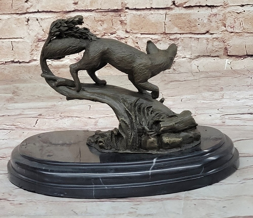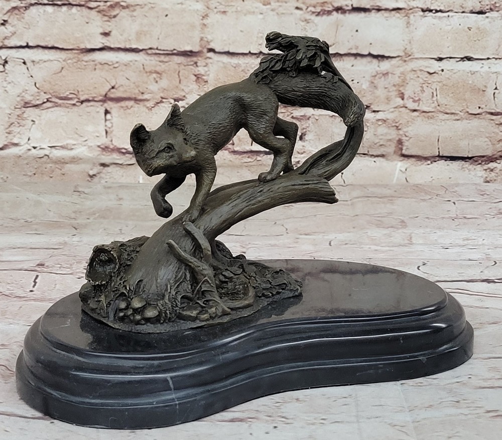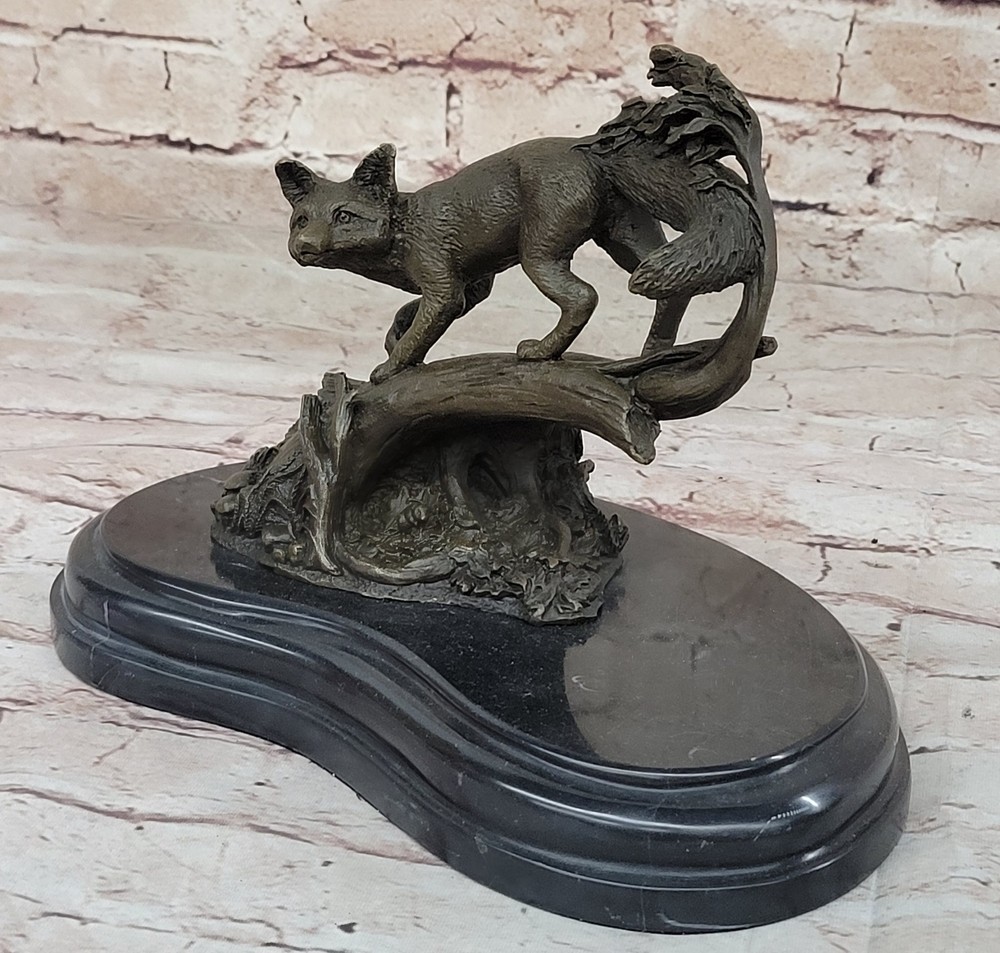 SIGNED HAND MADE LOST WAX FOX BRONZE SCULPTURE FIGURINE CABIN DECOR WILDLIFE NR SIGNED HAND MADE LOST WAX FOX BRONZE SCULPTURE FIGURINE CABIN DECOR WILDLIFE NR Condition : This sculpture is in perfect condition. Bronze Dimensions with Marble Base: Height 7.5" X Width 9.5" Marble Dimensions: Diameter 8.5" Height without base:9.5" Weight:9 LBS Inventory:64AL3705746 This captivating bronze sculpture features a fox, beautifully crafted with meticulous attention to detail and realism. The mystical hunter is depicted in a stand of trees, offering a touch of the wild and a sense of drama to any space. Whether placed near an entryway, as part of a home gallery, or in proximity to a fireplace, this artwork brings a unique charm that is both irresistible and enchanting. Crafted using the lost-wax method, a technique known for its precision and ability to capture intricate details, the sculpture showcases the artist's dedication to portraying the essence of this cunning creature. The antique brown patina finish adds a timeless quality, enhancing the overall aesthetic and giving the sculpture a sense of antiquity. This fox sculpture, reminiscent of rare collectibles, is more than just a decorative piece—it's a statement of artistry and a celebration of the natural world. Signed by the artist S. Beatuce, this handcrafted bronze masterpiece invites admiration for its craftsmanship and the unique character it brings to any environment. Signed S.Beatuce Fox Wild Animal Bronze Statue Figure Sculpture Figurine Art Video will open in a new window Using the eBay App? Paste link into a browser window: [isdntekvideo] Shipping Terms : Most of our items are shipped via USPS (United States Postal Service) mail or UPS. Most orders are shipped within 24-48 hours of purchase. Please be aware that not all items are available for USPS shipping due to size and weight. We do ship to Hawaii, Alaska, Canada, Puerto Rico, APO/AE, and U.S. Virgin Islands, however, an additional charge may be required. Please contact us before making any purchases in these areas. For Non-USA customers, you may be responsible for all duty, tax, brokerage fees that may be due upon delivery (shipping costs cover freight charges only). We also ship internationally. Please refer to the "Shipping and Handling" chart for the rates for each area. Payment : We accept just about any form of payment. PayPal, Master Card, Visa or American Express credit cards. Money orders, cashiers checks, and even personal or business checks. For governmental institutions, we will also accept a purchase order. Please understand that for personal or business checks we have to wait for the check to clear (usually 7 days) before shipping. Condition : New Detailed Hand Crafted Hot Cast Bronze Satisfaction Guaranteed. This is Stock Photo, Slight Color Variation!! Listing and template services provided by inkFrog