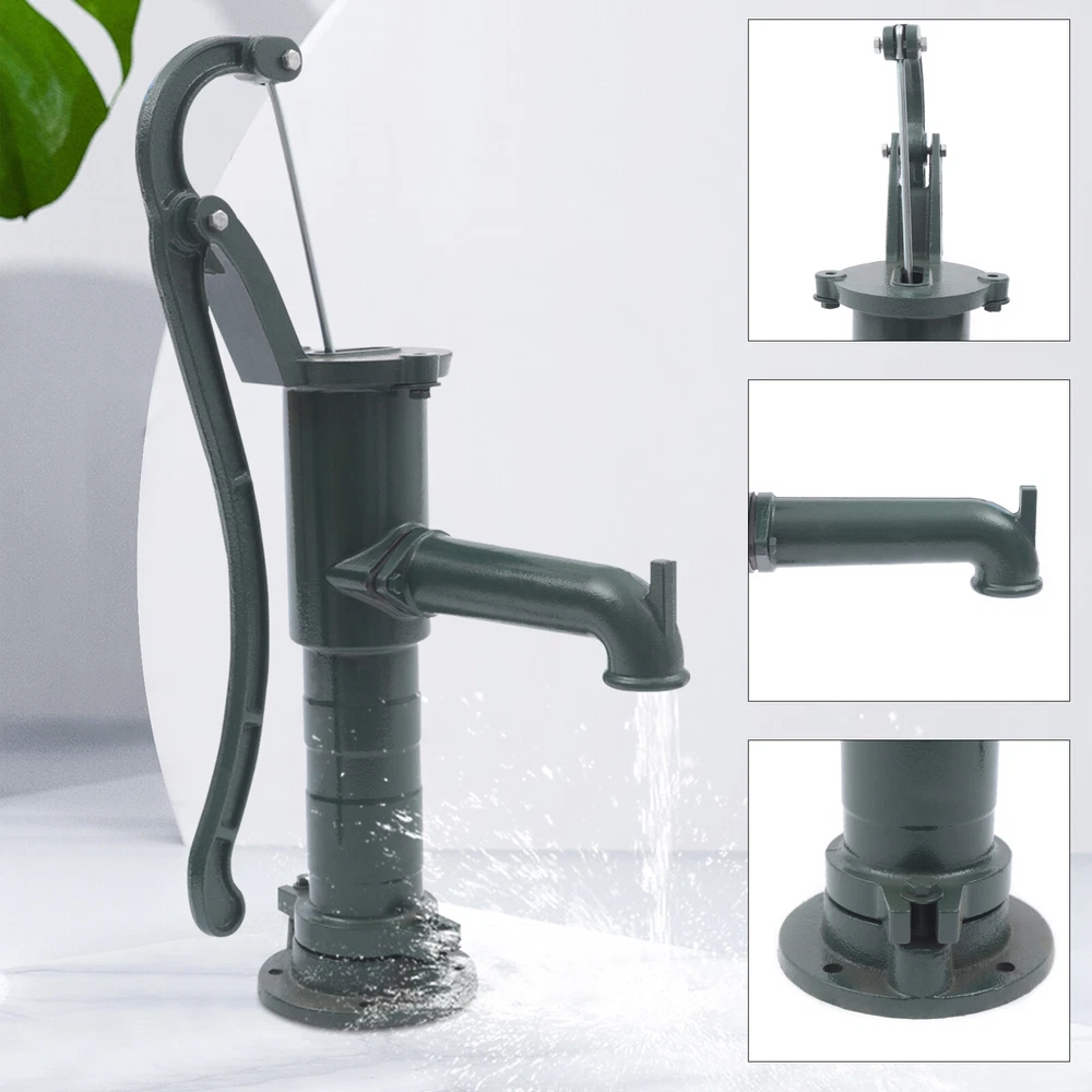 Description This pitcher pump is made of cast iron with a fine texture that is not easily deformed. Therefore, it is very durable and has a long service life. The elegant dark green color can be well-matched with gardens, parks, and other places. The handle is a very ergonomic design. It is smoother and more comfortable to hold as you work, which is very labor-saving. Key Features Extended Spout: The spout of our pitcher pump is about 8.07inch which is slightly longer than normal ones. This allows water to be discharged farther away and leaves space in the lower part for a bucket or basin. Long Suction Range: This shaking pump can suck up water within a vertical range of about 19.69ft. The longer suction range can help you accomplish many pumping works. Vintage Style: The elegant dark g Manual Pitcher Water Pump Hand Shake Suction Kits Well Jet Pump Cast Iron Description Description This pitcher pump is made of cast iron with a fine texture that is not easily deformed. Therefore, it is very durable and has a long service life. The elegant dark green color can be well-matched with gardens, parks, and other places. The handle is a very ergonomic design. It is smoother and more comfortable to hold as you work, which is very labor-saving. Key Features Extended Spout: The spout of our pitcher pump is about 8.07inch which is slightly longer than normal ones. This allows water to be discharged farther away and leaves space in the lower part for a bucket or basin. Long Suction Range: This shaking pump can suck up water within a vertical range of about 19.69ft. The longer suction range can help you accomplish many pumping works. Vintage Style : The elegant dark green color of this item can be well-matched with gardens, parks, and other places. Its retro and rustic design will add an impressive accent to your garden. Durable Material: This pitcher pump is made of cast iron with a fine texture, which and not easily deformed. Therefore, this item is very strong and durable, giving you a full sense of security. Ergonomic Design: The handle is a very ergonomic design. It is smoother and more comfortable to hold while you are working. You will not feel fatigued even after long hours of use, giving you great comfort. Labor-saving: The pitcher pump features a large water flow and the leverage principle makes you use more labor-saving. Spray Paint Treatment: The surface of the pump body is sprayed with paint, which can achieve the effect of rust and water resistance. Therefore, it has a longer service life. Easy to Operate: You just need to hold the handle and press up and down to pump the water out. It is very easy to operate. Easy Installation : The pump has pre-drilled mounting holes on the bottom and is also equipped with screws for your convenience. These thoughtful designs allow you to finish installation in a short time. Guaranteed Customer Service: We aim to provide quality products and services. If you have any problems, please feel free to contact us. We will reply and solve the problem for you as soon as possible. Details Smooth Edges : The edges of its handles are finely polished, which is not only very safe to use but also looks aesthetically pleasing. Fixed Screw Holes: There are screw holes at the bottom to fix the pump stably on the road. Application This pump is suitable for gardens, parks, ponds, scenic locations, etc. Specifications Model: BSB-75 Material: Cast Iron Surface Treatment: Spray Painted Color: Dark Green Suction Range: 6m/19.69ft Product Size: 67*15.8cm/26.38*6.22" Spout Length: 20.5cm/8.07" Gross Weight: 13.16kg/29.01 lbs Net Weight: 12.5kg/27.56 lbs Package Size: 72*27.5*18cm/28.35*10.83*7.09" Package Included 1* Pitcher Pump 4* Screws 4* Nuts Notes Please allow the slight color difference caused by the shooting light and 1-3cm error due to manual measurement, and make sure you do not mind before you order. Description Payment Delivery details Terms of sales About us Contact us Payment We accept ebay payment 。 Fees such as import duties, taxes are not included in the item price or shipping costs. These charges are the buyer's responsibility. Delivery details Shipping: 2-9 working days to: USA Terms of sales We maintain high standards of excellence and strive for hundred percent customer satisfaction. Feedback is very important to us. We hope that you contact us immediately before you give neutral or negative feedback, so that we can address your concerns. It is impossible to address issues if we do not know about them! About us Your satis faction is our ultimate goal. We work hard to earn your trust and future business. Our certified technicians have tested each item before shipping. The unit comes with 1 year limited warranty on all manufacturing defects. a) If you receive a defective item, you may return it or ask for a discount. Please contact us within 14 days after you receive the package. b) What you returned must be intact and in its original packaging as re? u. Customer is responsible for shipping costs of the returned item. c) We will cover the cost of shipping back t with the shipping rate indicated in the registration page. We will send you a new unit or refund the full payment you paid. Thank you. Contact us Business Hour Business Hour: Monday To Friday: 8:30 AM to 5:00 PM (Beijing China time) Due to time zones, our reply to your questions may not be immediately. But within above working time, we will reply your email within 24 hours. If it's non-workdays, please kindly be patient and wait till Monday. Please contact us with ebay message. Please feel free to contact us if you have any questions. Monday To Friday: 8:30 AM to 5:00 PM (Beijing China time) Due to time zones, our reply to your questions may not be immediately. But within above working time, we will reply your email within 24 hours. If it's non-workdays, please kindly be patient and wait till Monday. Please contact us with ebay message. Please feel free to contact us if you have any questions.