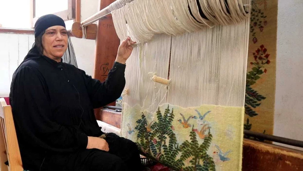 Hand Woven Tapestry-Large 6.5 FT-Egyptian Folk Art Wall Hanging-Kilim Rug Decor Hand Woven Tapestry-Large 6.5 FT-Egyptian Folk Art Wall Hanging-Kilim Rug Decor Handwoven Egyptian Tapestry - Natural Dye Wool Thread - Artisan Wall Art Experience the beauty of authentic Egyptian handwoven tapestry, crafted using natural plant-based dyes on high-quality wool threads. What makes each piece truly extraordinary is that the skilled artisans weave entirely from imagination—without sketches or guides—improvising every detail as they work. This rare mastery ensures that no two pieces are alike, making each tapestry a one-of-a-kind expression of artistic genius. The natural dyes give vibrant, long-lasting colors while being eco-friendly. Perfect for adding a touch of cultural elegance to your home. Hand Woven Tapestry Wall Hanging Egyptian Folk Art - Wool Kilim Size: 200cm X176cm ( 6.5 foot X 5.8 foot" ) Search Terms: Egyptian wall hanging, handwoven tapestry, wool kilim decor, folk art textile, artisan woven rug, tribal wool hanging, Folk style textile, cultural wall decor, ethnic woven piece, handmade wool textile, decorative wall rug, traditional woven art, home decor tapestry, bohemian wall hanging, unique woven artwork, wool wall decoration, woven home accent, natural fiber hanging, artisan craft decor, traditional textile art, desert inspired rug, colorful wool hanging, hand-dyed wall piece, artisan weaving, heritage textile art, handcrafted wool rug, cultural heritage decor, ethnic fiber art, boho chic wall decor, woven textile artwork, handwoven wall accent, tribal pattern tapestry, authentic textile hanging, handmade home textile, eco-friendly wall art, unique textile design, artistic weaving piece, natural wool hanging, handcrafted home decor, traditional weaving art, ethnic pattern wall hanging, artisan rug textile, wool decorative piece, handwoven wall fabric, cultural weaving art, folk textile rug, handmade wall fabric, unique woven textile, boho style wall piece, traditional rug hanging, cultural woven piece, hand-dyed wool textile, tribal inspired hanging, artistic home rug, handmade textile artwork, decorative fiber wall hanging, heritage rug piece, bohemian textile rug, ethnic weaving piece, handcrafted wall hanging, artisan style rug, woven wool fabric, cultural decor piece, traditional fiber hanging, vintage fiber artwork, hand-spun wool rug, unique tribal decor, rustic textile fabric, artistic home hanging, handwoven wall rug, folk art hanging piece, natural dyed wool rug, ethnic handmade decor, woven cultural textile, handmade wool fabric, traditional home rug, boho textile hanging, artisan woven wall piece, rustic wool hanging, artistic woven fabric, handmade fiber wall art, cultural rug hanging, tribal wool fabric, unique home tapestry, natural fiber textile, ethnic artisan rug, handcrafted fiber hanging