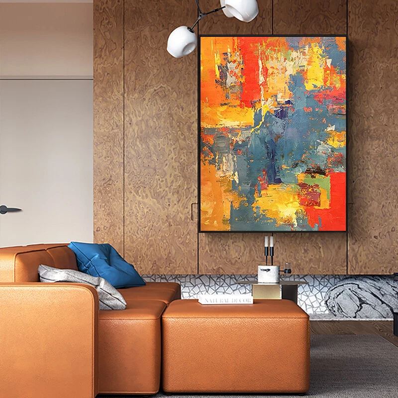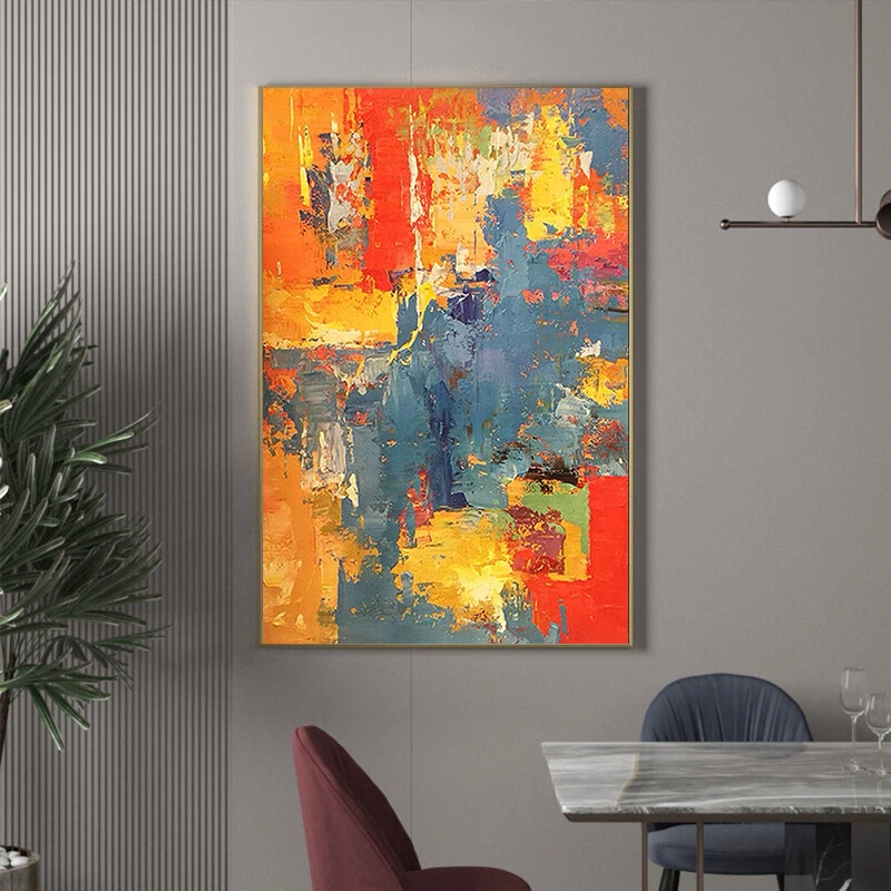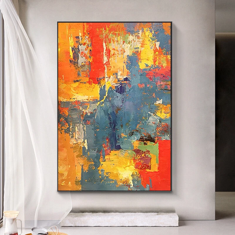 Hand painted Abstract Oil Painting Modern Simple Yellow Orange Gray Abstract