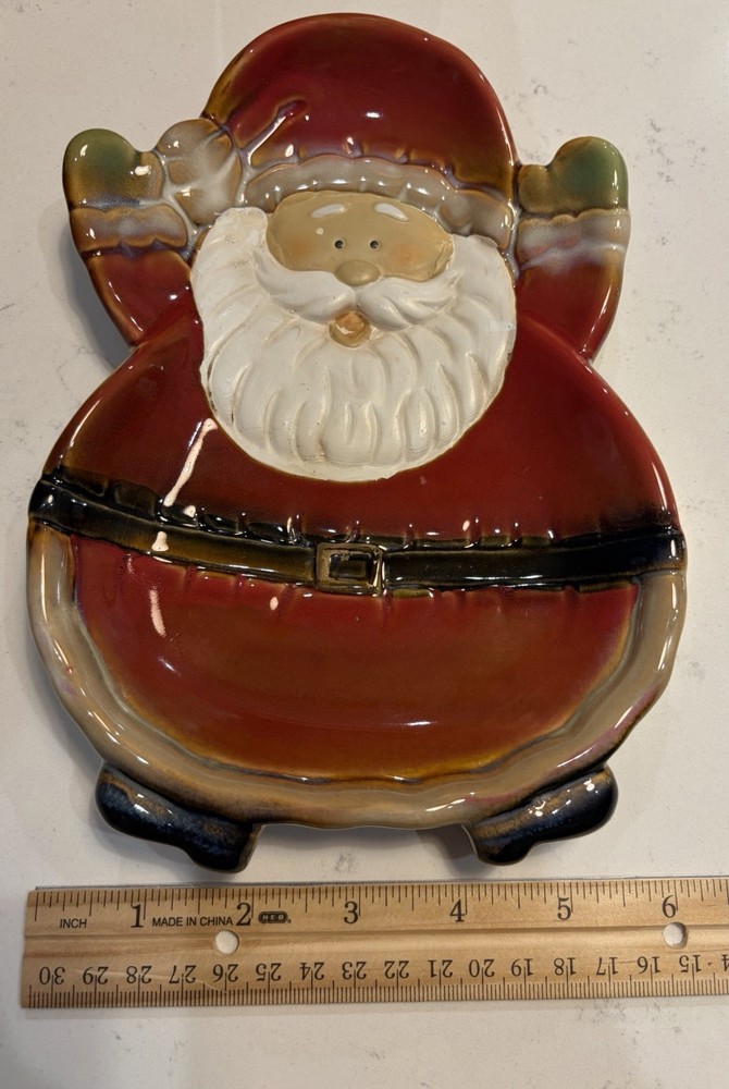 This hand painted and glazed earthenware Santa Claus nut or candy serving dish is the perfect addition to your holiday decor. The multicolor earthenware dish features a festive Santa Claus theme, making it a stylish and functional piece for any room in your home. Easy to clean with a damp cloth, this candy dish adds a touch of holiday cheer to your table decor. The hand painted & glazed finish makes this piece an eye catching item for Christmas season.