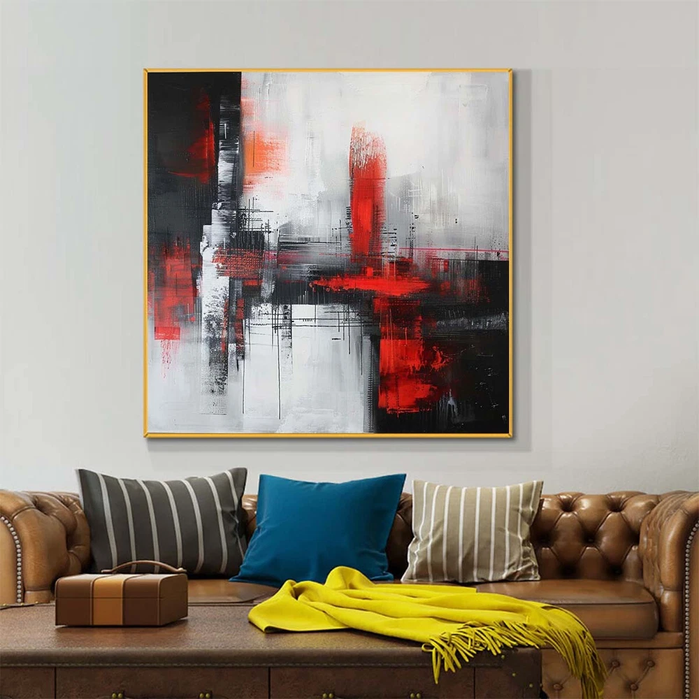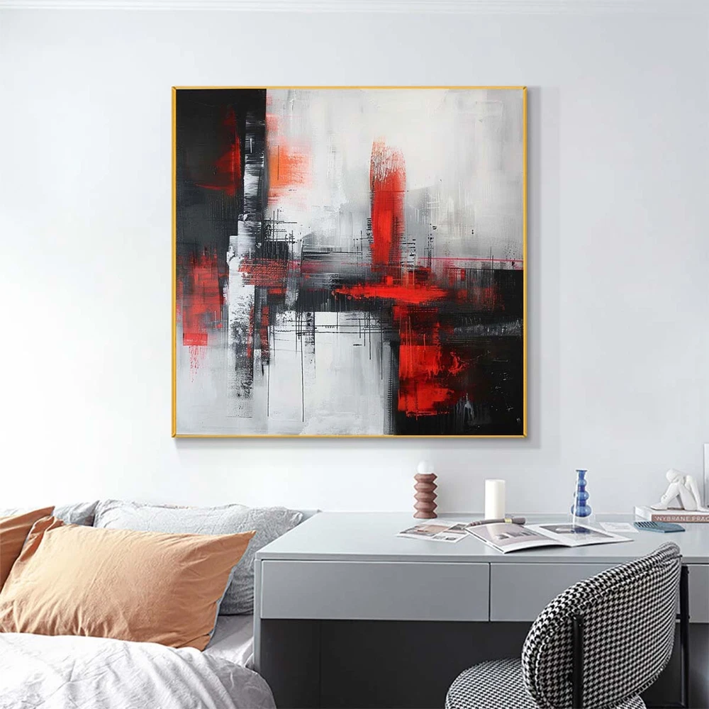 Hand painted Oil Paintings On Canvas Wall Art Abstract City White Red 31in