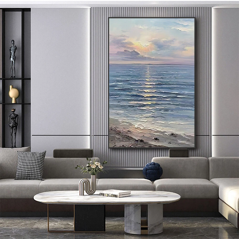 Hand painted Sunset Skyline Oil Painting On Canvas Sunrise Seascape Wall Art