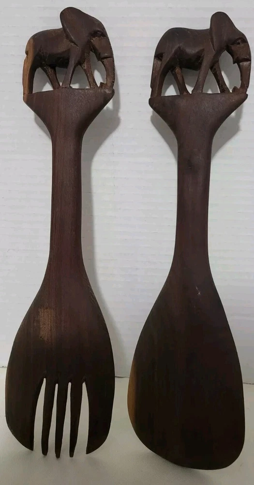 Add a touch of elegance to your dinner table with this exquisite Hand-Carved Wooden Elephant Salad Serving Spoon and Fork set. Made from high-quality wood, this set is not only durable but also eco-friendly. The beautiful elephant design on the handles makes it perfect for any occasion, be it a family dinner or a formal party. With a set of serving and salad tongs included, this set is perfect for tossing and serving salads. The natural wood finish adds a rustic charm to your table setting. Bring home this one-of-a-kind set to impress your guests with your sense of style and taste.