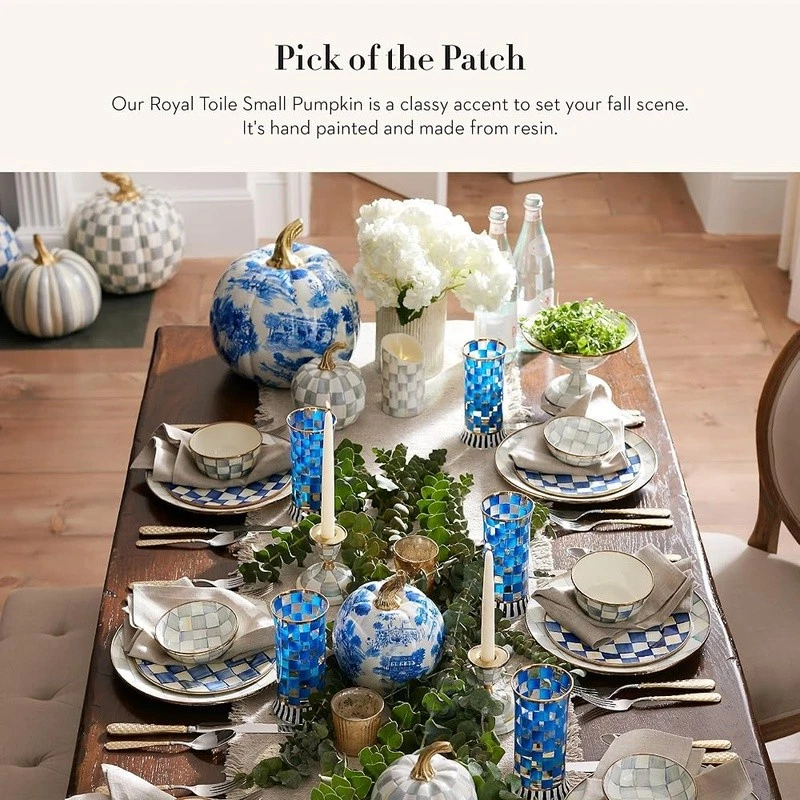Wet Dog Food Chopped Ground Dinner Beef Canned Adult Nutrition 4 Pack 22oz Cans 15.68 USD 16.86 USD Free shipping 7% off Professional Handheld Seed Spreader Bag Seeder 25lbs Capacity W/ Waterproof Bag 48.52 USD 52.17 USD Free shipping 7% off Christmas Window Silhouette Lights 4 Pack Snowflake Snowman Deer Bell Decor New 51.97 USD 55.88 USD Free shipping 7% off Iridescent Glass Beverage Dispenser 1.5 Gallon Clear Drink Server W/ Lid Spigot 28.41 USD 30.55 USD Free shipping 7% off 3 in 1 Pasta Maker Attachment Kitchen Stand Mixer Roller Cutter Set Red New 51.88 USD 55.79 USD Free shipping 7% off 4-Person Clip & Camping Dome Tent Outdoor Portable Hiking Lightweight HOT 61.4 USD 66.02 USD Free shipping 7% off Durable 5.70-8 8-Ply Trailer Tire Non-Radial Highway Trailer Replacement Tire US 60.68 USD 65.25 USD Free shipping 7% off Large Jerky Gun W/ Stainless Steel Trigger 3 Attachments & 5 Spice Packets New 23.72 USD 25.5 USD Free shipping 7% off Cozy Plush Throw Blanket Multi Color Leopard Machine Washable Eco Friendly New 11.61 USD 12.48 USD Free shipping 7% off Durable Aluminum RV Stabilizer Jacks Set Adjustable Height Travel Trailers New 42.3 USD 45.48 USD Free shipping 7% off Acrylic Lying Deer Christmas Tabletop Decor Holiday Centerpiece Elegant Design 31.35 USD 33.71 USD Free shipping 7% off Musical Nutcracker Snow Globe Clara Christmas Decoration Plays Nutcracker Suite 48.34 USD 51.98 USD Free shipping 7% off About this item HAND-PAINTED DECORATIVE RESIN PUMPKIN: Whether it’s spooky or harvest season, this pumpkin decoration makes darling fall decor for the mantel or kitchen table. Display one alone, or decorate with a patch of MacKenzie-Childs resin pumpkins. ELEGANT HALLOWEEN DECOR: Our Royal Toile Small Resin Pumpkin is an elegant pick from our patch. It features a royal-blue toile pattern of our upstate New York estate and is topped with a gold-leaf pumpkin stem for extra style. HOME & SEASONAL ACCESSORIES: At MacKenzie-Childs, we believe that everyday items can be made extraordinary. From the dinner table to the mantel, you can enjoy the magic of MacKenzie-Childs anywhere. We offer table Halloween decor, autumn decor, and more. THE PERFECT GIFT: A MacKenzie-Childs piece is much more than a gift—it’s the beginning of a lifelong collection. Our Halloween and fall decor items make amazing wedding and housewarming gifts. Welcome to the MacKenzie-Childs family! : MacKenzie-Childs was born of our love of home and our commitment to fresh, innovative design. Each piece holds the surprise and joy of the unexpected. Color: Royal Brand: Theme: Seasonal, Home Decor, Nature And Outdoors, Halloween Material: Resin Style: American You may also like LED Light Up Spiral Christmas Trees Set of 2 Indoor Outdoor 8 Function New 43.83 USD 47.13 USD Free shipping 7% off LED Christmas Tree Lights 25ft Flagpole Outdoor Decor 8 Modes 1450 Lights New 78.57 USD 84.48 USD Free shipping 7% off 35in Snowy Pine Tree Rustic Tabletop Decorative Tree Indoor Porch Patio New 45.87 USD 49.32 USD Free shipping 7% off Prelit Artificial Christmas Tree 35 Clear Lights Medium Profile Indoor Use 57.79 USD 62.14 USD Free shipping 7% off Handwoven Water Hyacinth Christmas Tree Collar Cord Management Rustic Decor 28 48.34 USD 51.98 USD Free shipping 7% off Prelit 4ft Christmas Tree LED Lights Fire Resistant Metal Base Easy Assemble New 58.01 USD 62.38 USD Free shipping 7% off High Quality Christmas Tree W/ Metal Branches & PVC Leaves Stable Decoration New 43.51 USD 46.78 USD Free shipping 7% off 6ft Pop Up Tinsel Christmas Tree W/ Star Topper 40 Balls & 8 Light Modes New 43.5 USD 46.77 USD Free shipping 7% off Hanging Christmas Tree 5ft 28 Colorful Balls 144 LED Lights Indoor Outdoor New 48.34 USD 51.98 USD Free shipping 7% off Large Ceramic Christmas Tree W/ Timer LED Light Tabletop Holiday Decoration New 48.34 USD 51.98 USD Free shipping 7% off Pre-lit Christmas Tree Set 2-Pack Battery Operated Timer Indoor Outdoor Decor US 72.52 USD 77.98 USD Free shipping 7% off 4ft Prelit Christmas Tree W/ 50 Warm White Lights Artificial Holiday Decor New 43.5 USD 46.77 USD Free shipping 7% off