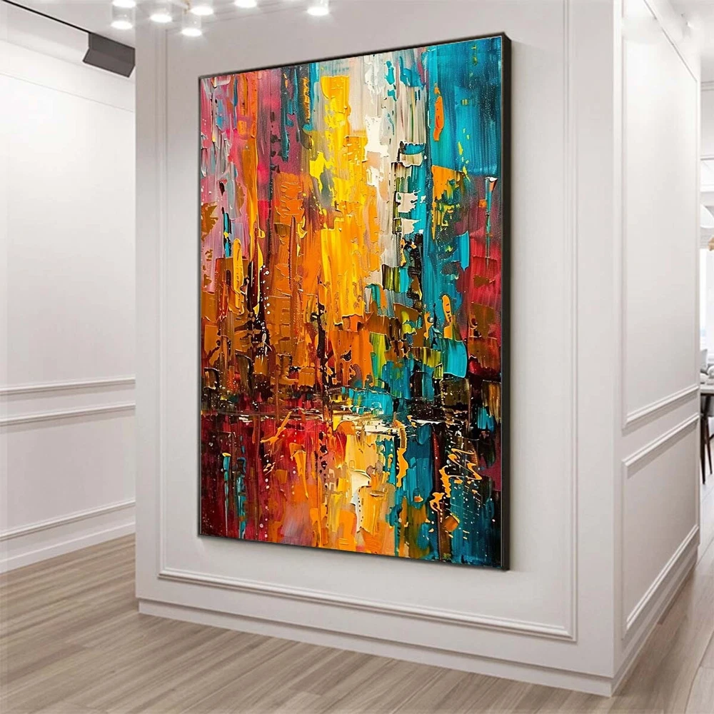 Hand-Painted Oil Painting on canvas Modern Orange Wall Art Abstract streetscape