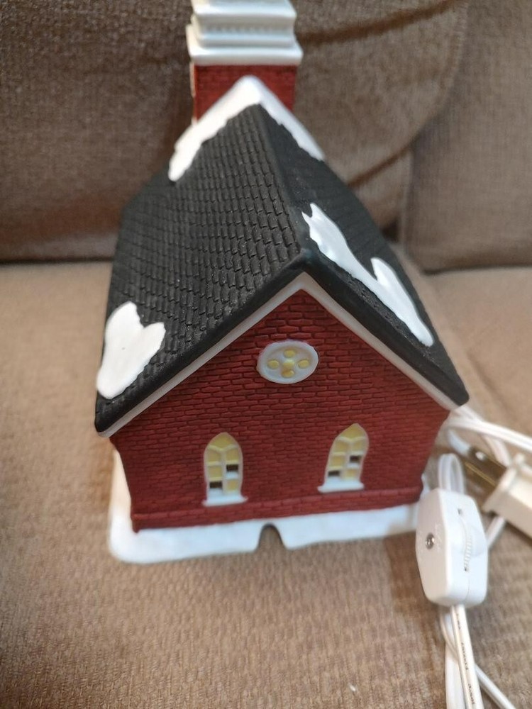 Pair Of Red Ceramic Houses With Solid Snow White Roofs 1 House 1 Church Preowned