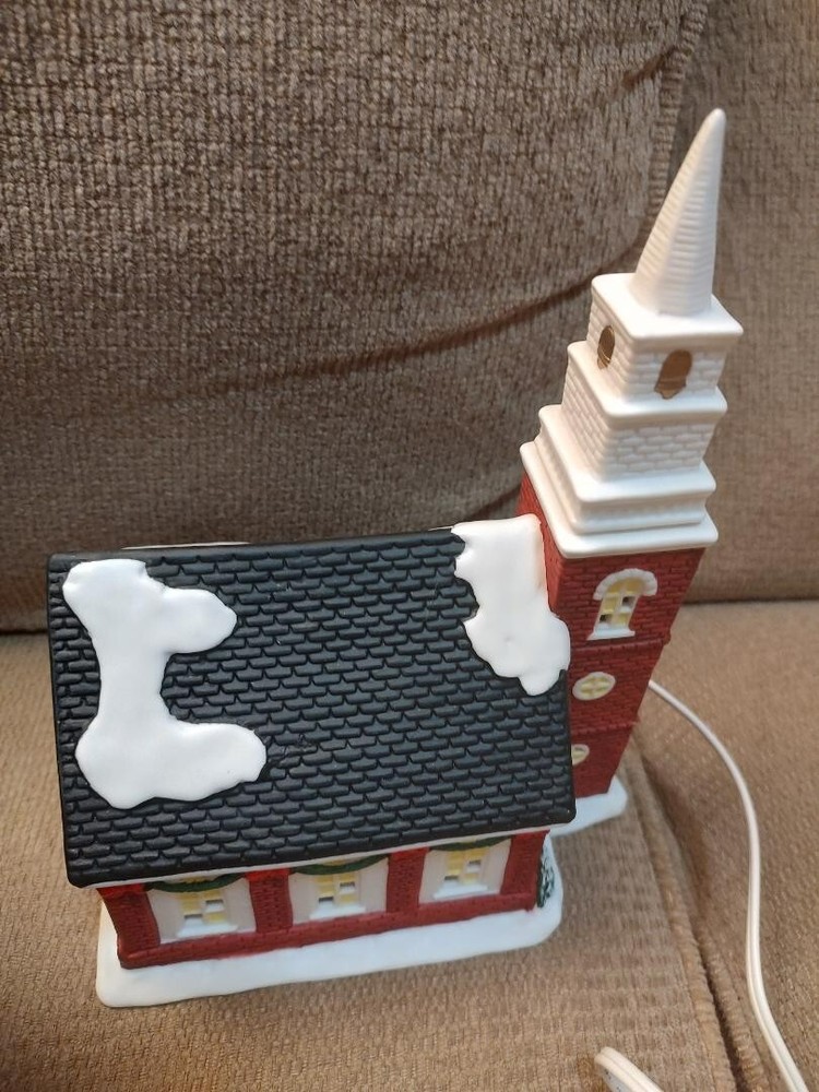 The Galleria Hand Painted Fine Porcelain Village Church is a Christmas decor piece from 2003 featuring a church-shaped building with a multicolor painted brick design. This Christmas village item is part of the Galleria collection and is hand-painted, adding a unique touch to any room during the holiday season. Made of porcelain, this church-themed decoration is ideal for adults looking to create a festive and inviting Christmas village display.
