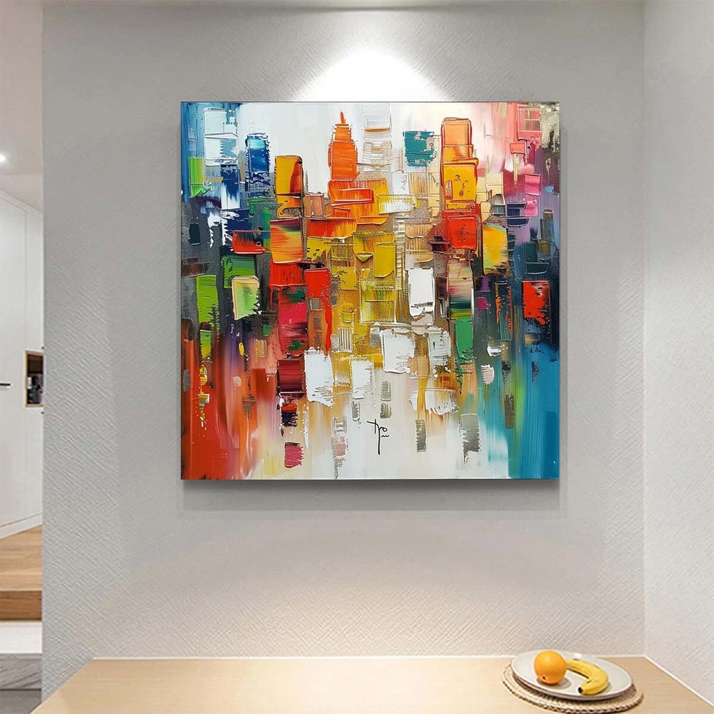 Hand-Painted Texture Oil Painting on Canvas Abstract Wall Art Deco Home red city