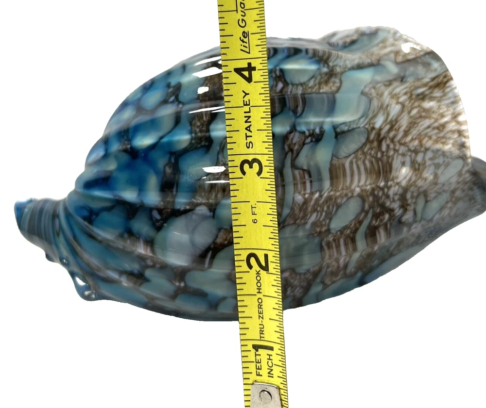 This unique art sculpture is detailed and beautifully hand crafted. Made of hand-blown glass and featuring a variety of colors displayed in a confetti pattern. Colors include blue, pink, and white. The art glass also has Aventurine prominently displayed. Measurements are 9"x, 3.75"x4" Sleek glossy finish. Shell shown in a variety of lighting settings to demonstrate the beautiful depth and ability to be very versatile. Items are shipped the next business day, after payment. Automatic combined shipping on multiple same day purchases! Every effort is made to check all items visually and by touch. Please refer to the photos/videos as they are an important part of the description. Occasionally, due to the antique or vintage condition of an item, we will not clean or detail an item so the item may be preserved utilizing the method the buyer or collector prefers. Your questions are encouraged prior to bidding. Props used in item images are not included in purchase unless specifically stated in description. Excellent service is always our goal. If there is a concern, please let us know immediately so we may attempt to resolve the issue. Shipping: All items are carefully packed to help withstand the perils of transport. All packaging in shipping & receiving is recorded for quality assurance. Whenever possible, we support the environment by prioritizing recycling of clean, intact packing supplies. Fragile items will require more packaging and therefore items may have a small handling fee to support this. Here is a link to our entire store on eBay! Collectors, we often have coordinating pieces available. The link below goes right to our store where you can search for your current obsession, browse, or even get your gift shopping done from a trusted merchant. Copy and paste the link in your browser for a quick transfer to our awesome store! https://www.ebay.com/str/hamptontohampton