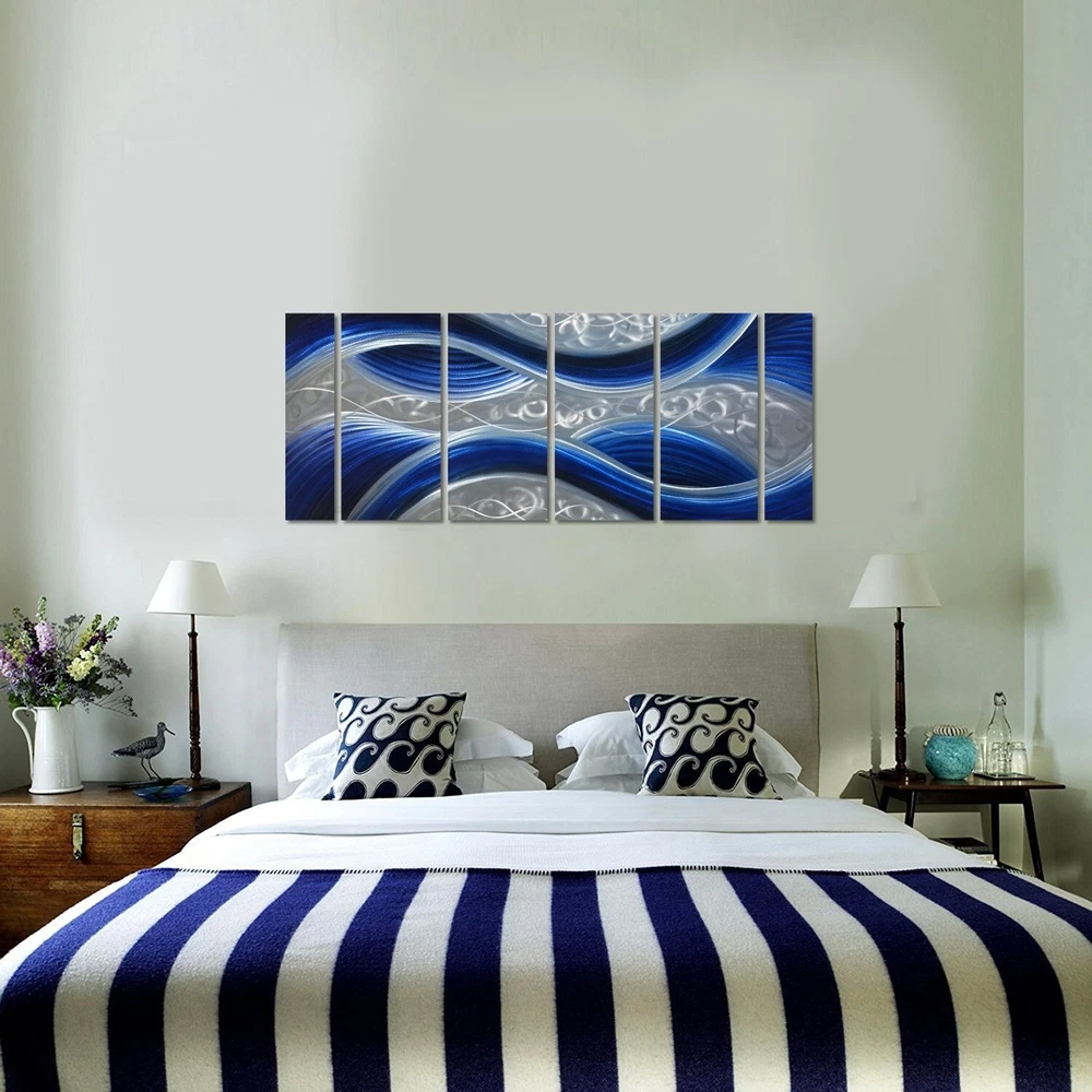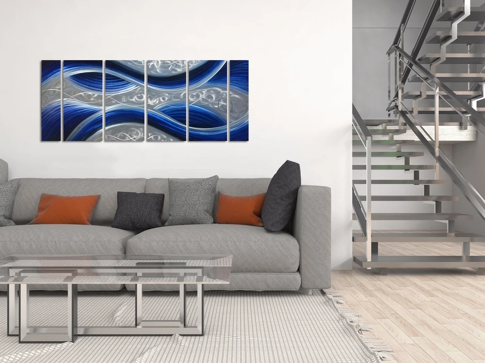 Handcrafted Abstract Metal Wall Art with Soft Color, Large Scale Decor in Huge Blue Line Design, 3D Artwork for Indoor Outdoor Wall Decorations, 6-Panels Metal Art Measure 24"x 65" ✓ Free 60 Day Returns ✓ Free Express Shipping Description: Features: PURE HAND GRIND - This beautiful Soft Color Huge Blue Line abstract metal wall art makes by pure hand grind on aluminum plate, will complement contemporary, modern and traditional home decor. COOL AMAZING LOOK - As the light changes so does your mesmerizing 3D artwork, natural variations in the rich paints add depth, dimension, and life to your walls. This artwork looks even more beautiful than picture, especially when the light hits the panels, it almost come alive. COMPLIMENTS - The impact of this stunning metal artwork creates an instant conversation piece and focal point for your room, you will get lots of compliments for the gorgeous original design artwork. EASY TO INSTALL - Our lightweight yet durable aluminum metal artwork is easy to install, wall art arrives ready to hang with pre-installed brackets and hardware for easy mounting, a template will help you. VERSATILE DECOR OPTIONS The 6 panels, full size 65x24 Non-corrosive metal artwork is perfect for decor living room, bed room, kitchen, fireplace, office, hotel, dining room, bar, indoor or outdoor. Product Details: Product Dimensions: 65 x 24 x 0.01 inches Item Weight: 9.03 pounds Manufacturer: MyArton Country of Origin: China Is Discontinued By Manufacturer: No Date First Available: November 8, 2017