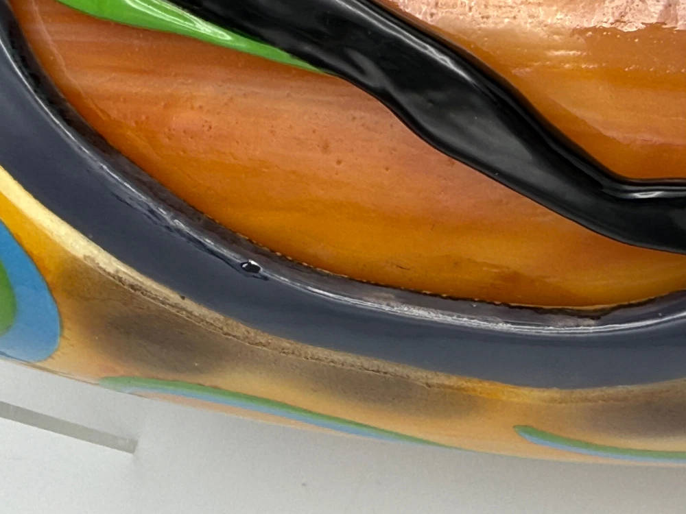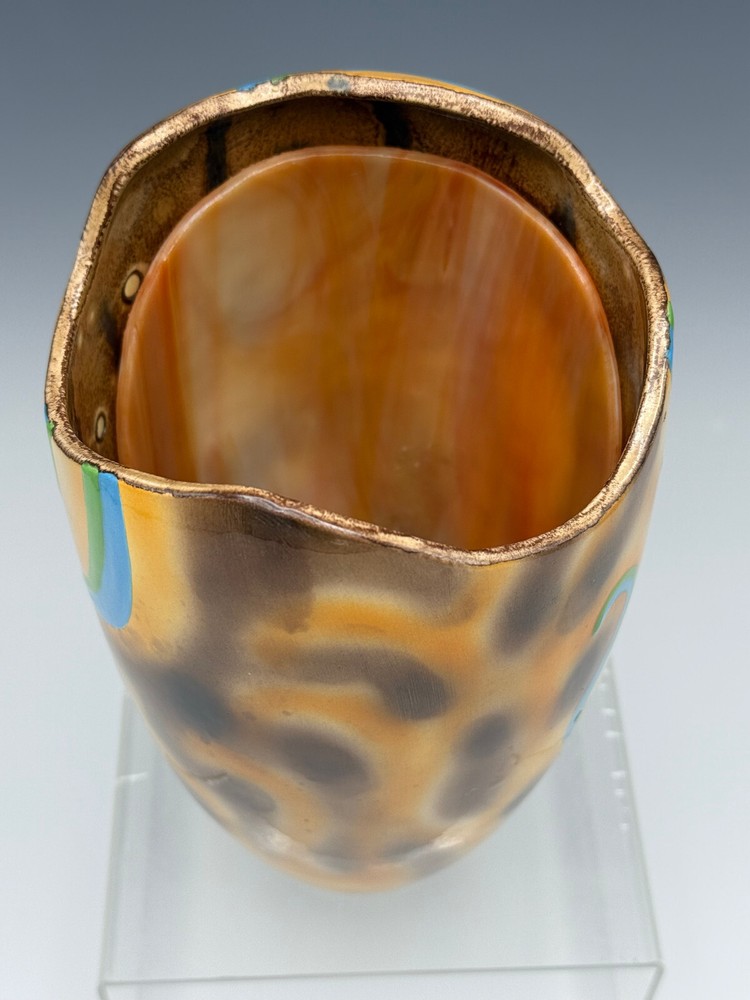 Up for your consideration is this very interesting studio crafted vase. It is a combination of ceramic with a slag glass insert. This measures 5 1/2" across and 8 1/2" in height. The base is signed, but we could not find any information out about this studio. There is a small scuff on the back and a teeny nick shown in the photos that may be from when the vase was made. Please check out our photos and message with any questions. Thank you for visiting. This is a fun retirement gig for us. We try our best to describe all our items as accurately as possible. You can count on customer service being our priority. Got any questions? Feel free to drop us a message via eBay anytime. We are happy to combine shipping of items. If you purchase multiple items and we can combine them safely, we will refund you for the over payment of shipping. Please do not worry, we do this everyday. Please be patient for a response from us, we are not always online. We take pride in delivering 100% satisfaction, evidenced by our feedback. If you aren't entirely happy with your purchase, don't wait! Just drop us a line. We'd much rather partner with you than have negative feedback left. We aim to ship your items within 3 days of the sale. Most of our packages will be shipped out USPS or FedEx. We only use quality shipping materials and do not pack with old dirty boxes and newspaper. We take pride in making sure your items are treated with detailed attention so you will receive them intact. Our goal is to get your treasures to you safely. Occasionally you may see a refund from us for shipping costs after your items are packed. We are just passing back any over payments for shipping paid. If you get a damaged package, don’t worry! Just give us a shout and we'll sort it out.