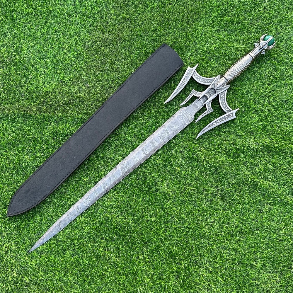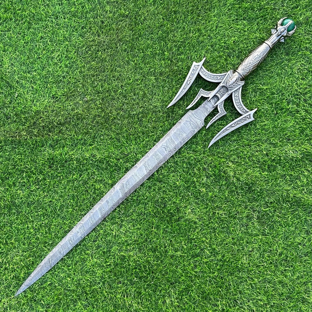 EXCLUSIVE HANDCRAFTED Damascus Steel Blade: A Legendary Sword for the Modern Warrior, Medieval Sword Swords Battle Ready, Hand Forged Sword, Damascus Sword, Long Sword, Viking Sword, Sword, Wedding Gift, With sheath Product Details: Overall Length: Approximately 34.0"inches (Approx.) Blade Material: Genuine Damascus Steel Blade Hardness: 54-58 HRC Handle Material: Pewter Size Verification: To help you easily determine the size, we've included images with a scale for precise dimension reference. Thank you for your understanding. We appreciate your consideration. Included Accessories: Sheath -excellent husband wife gift -Wedding gift -Father's Day gift -Mother's Day gift -Birthday Gift -Groomsmen gift -Christmas gift -Luxury Gifts For Men -Anniversary gift for husband -Thanksgiving Gift For International Customers: We kindly advise our international customers to familiarize themselves with their country's regulations prior to making a purchase. If customs in your region request customs duties, please be prepared to cover these costs. Regrettably, we cannot assume responsibility, nor issue refunds in such cases. Our Damascus Steel Creation Process: At our workshop, we take immense pride in crafting authentic Damascus steel knives that surpass mere acid etching. Here's an overview of our Damascus steel-making process: 1. Material Selection: We meticulously combine 1095HC and 15N20 nickel carbon steel for our blades. 2. Layering: The chosen steels undergo repeated heating and folding to achieve a remarkable 384 layers. 3. Acid Burn: Following the layering process, the blade is treated with acid, revealing the brilliant nickel shine and a dark gray hue in the high carbon steel, thereby showcasing the stunning Damascus patterns. 4. Blade Finishing: Concurrently, we expertly sharpen the blade's edge, transforming the acid-treated edge into a striking satin finish. Our unwavering commitment to preserving the authenticity and craftsmanship of Damascus steel ensures that each knife in our collection showcases intricate layers and delivers exceptional performance. AGE LIMITATION: Please note that we exclusively sell knives to individuals who are 18 years of age or older. Additional Details: Leather Sheath (if pictured): Rest assured, this item comes with a superior-quality, sheath. Crafted with meticulous hand-tooling and stitching, it exemplifies fine craftsmanship and is designed for exceptional durability. The added stitching ensures it withstands years of demanding use, providing reliable protection for your knife throughout its lifetime. Care and Maintenance: When necessary, use a Diamond Wet Stone or a superior sharpening tool to maintain a 20-degree blade edge. After use, clean the item with soap and water, ensure thorough drying, coat it with gun oil, and store it separately from the sheath. Leather absorbs moisture from the air and can lead to blade rust if stored improperly. Customer Feedback: Your satisfaction and feedback are of utmost importance to us. We genuinely appreciate your positive reviews! When assessing shipping time, please consider international transit. Your recognition bolsters our confidence to enhance our services. If you encounter any issues with your order or product dissatisfaction, please reach out to us first. We are committed to resolving any concerns to your satisfaction and kindly request you not to leave neutral or negative feedback. Payments & Returns: All accepted eBay payment methods are available for this purchase. Our return policy typically extends to 14 days. Shipping and Handling: We offer free shipping on all our products (In the USA) Tracking Info: The buyer will receive the tracking number via email (if available). You can also track the shipment in the "Order Details" section on eBay. USPS UPS DHL updates tracking information nightly (if available). Contact: Feel free to contact us anytime via eBay messages. We are dedicated to responding to your inquiries within 24 hours and providing the best possible assistance.